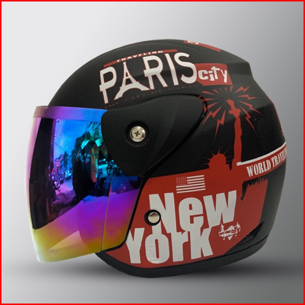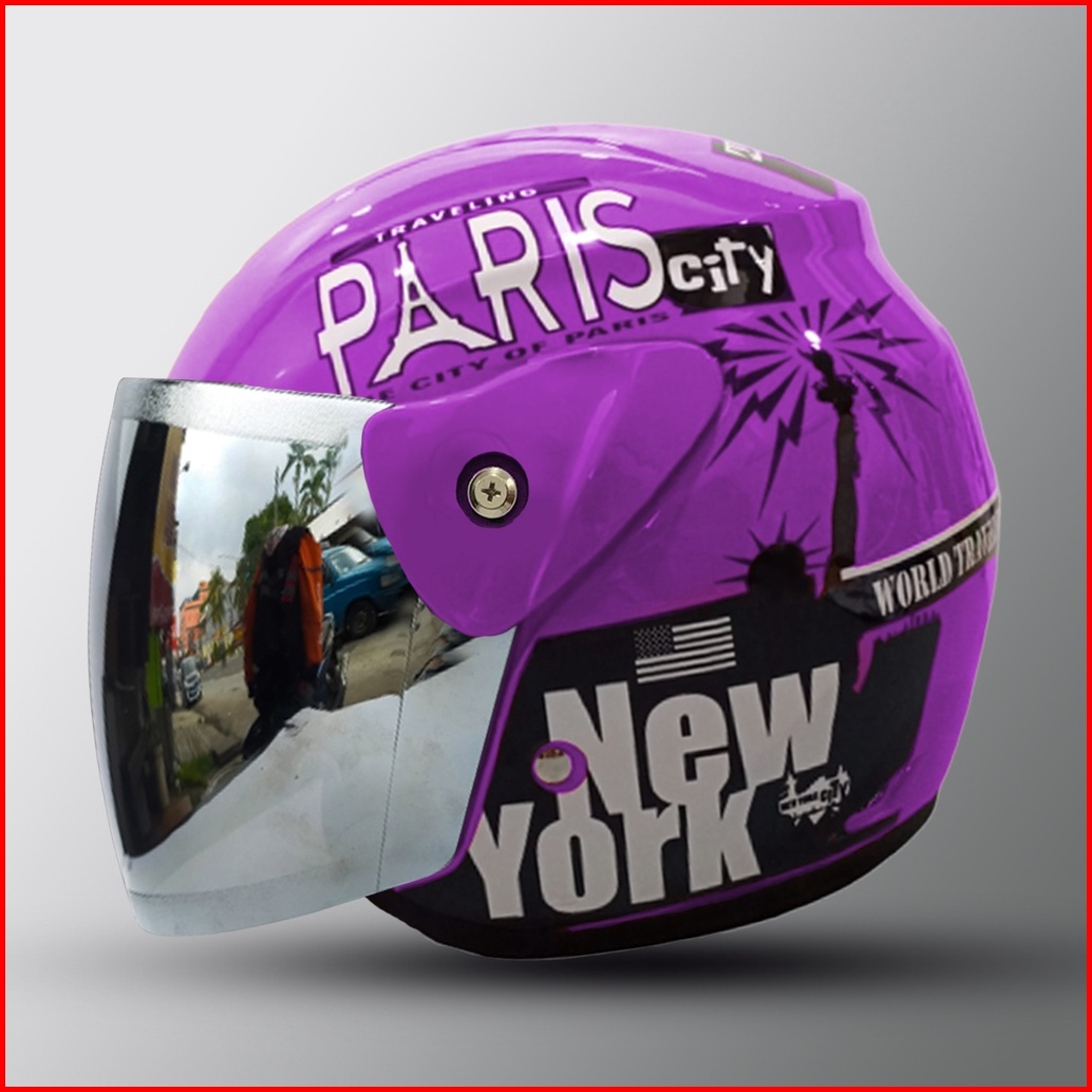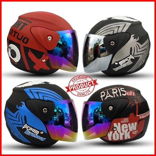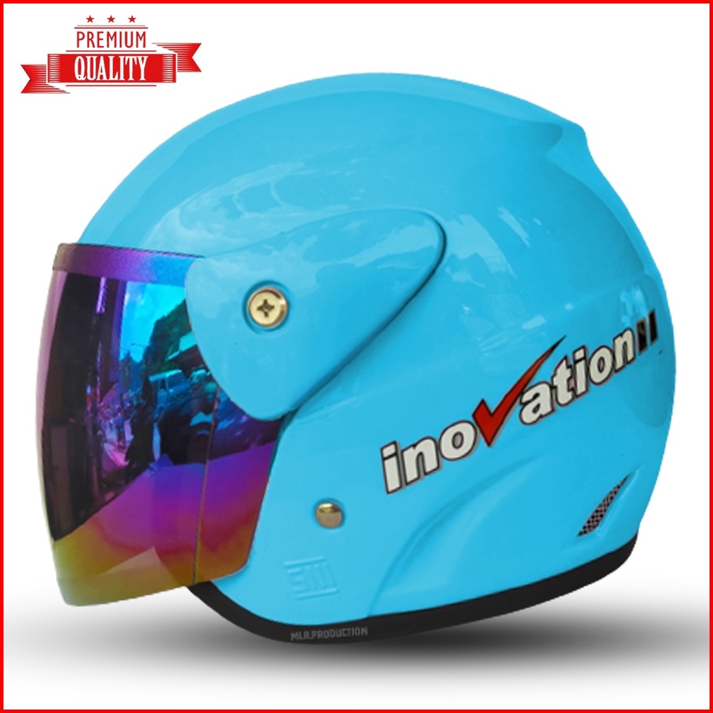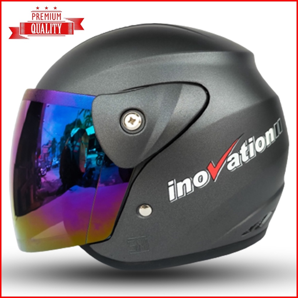 Helm Dewasa Half Face Inovatio Motif Sni Mirip Seperti Helm Gm Original Kaca Pelangi Kaca Silver Untuk Pria Dan Wanita D