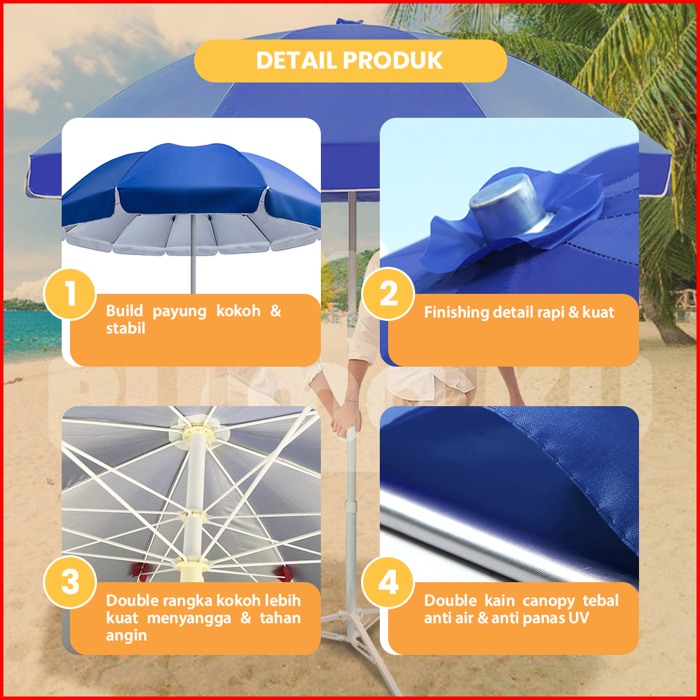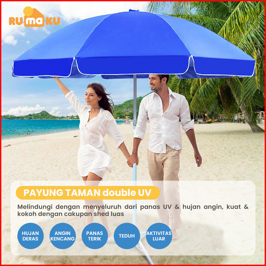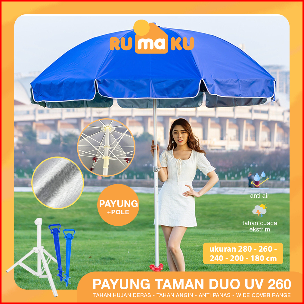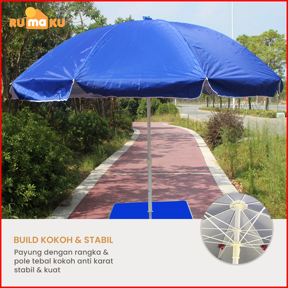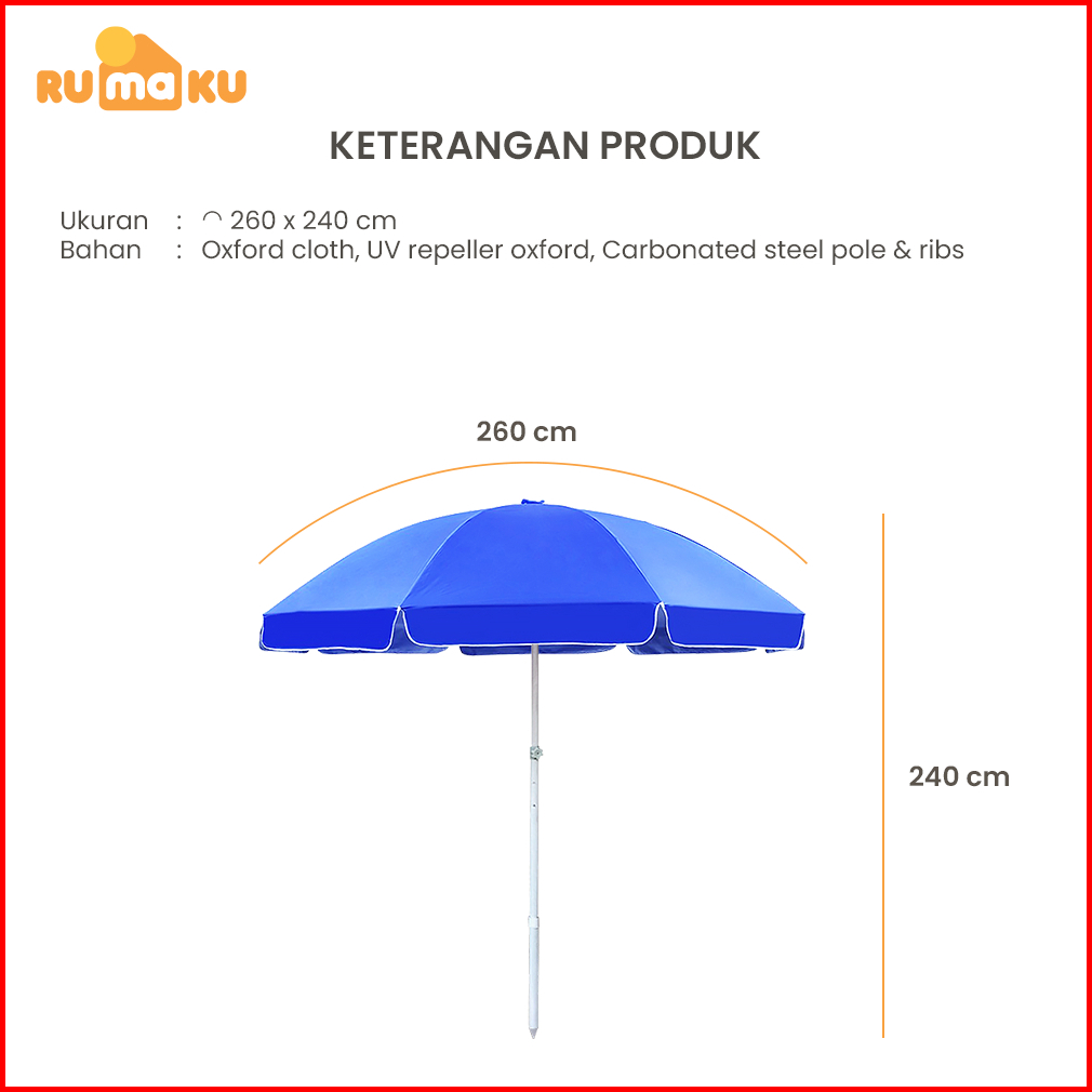 Payung Jualan 260 Cm Kain Oxford Dua Lapis Jumbo Besar Rangka Besi Kokoh Anti Uv