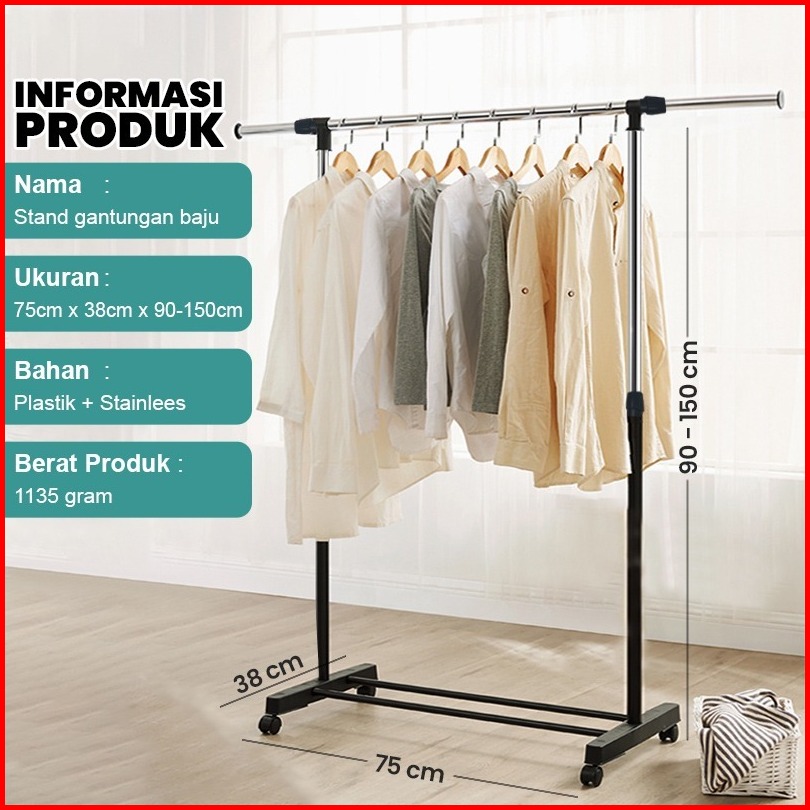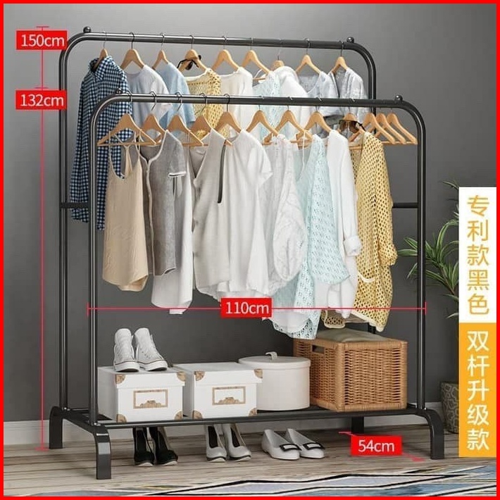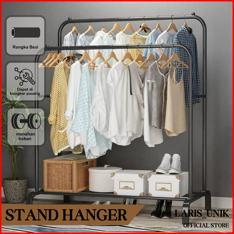 Laris Unik Rak Baju Gantungan Baju Besi Stand Hanger Display Butik Bazar Jemuran Pakaian Stand Hanger Gawang Double Hita
