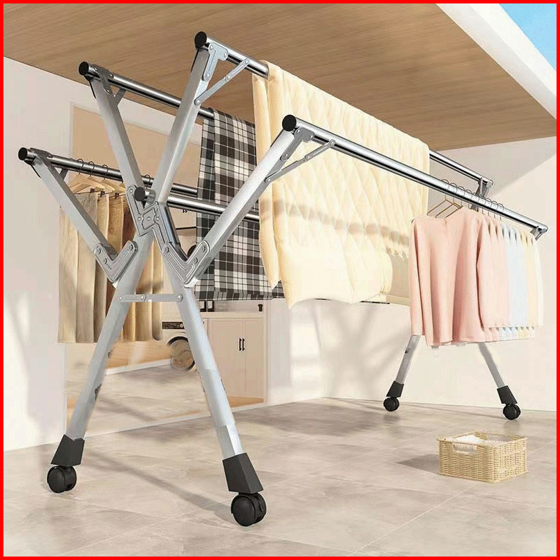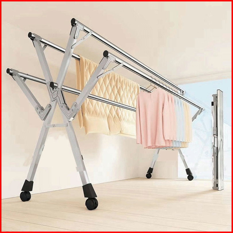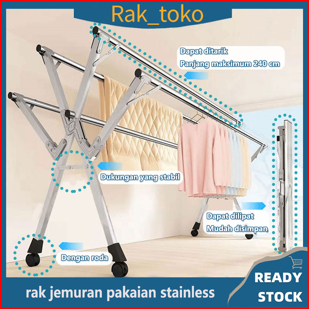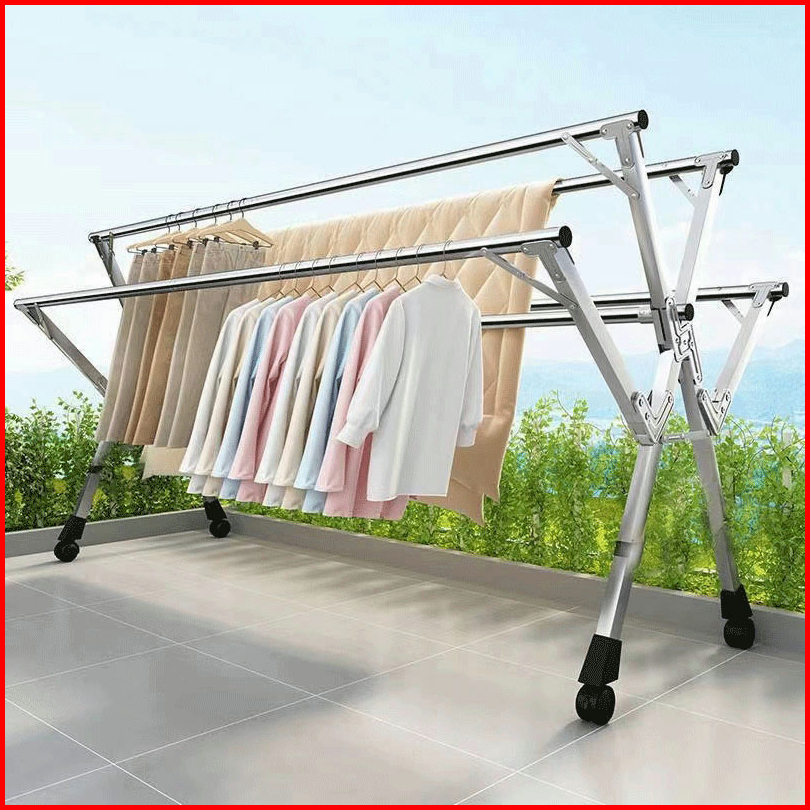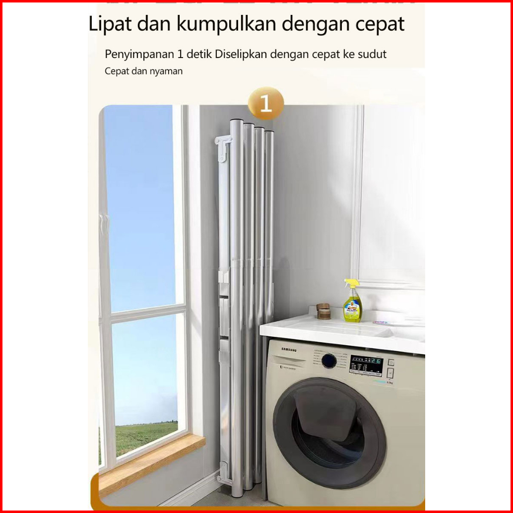Jemuran Baju Stainless Lipat Seluruh Baja Dengan Katrol 5 Batang Pakaian Pengeringan Tali Pakaian Stainless Steel Kapasi