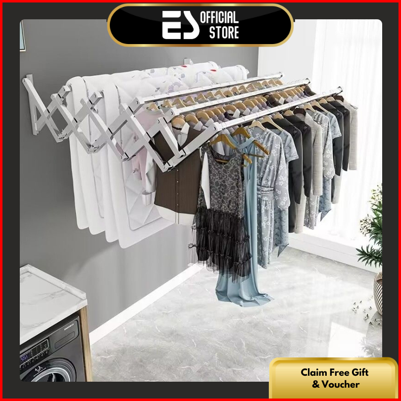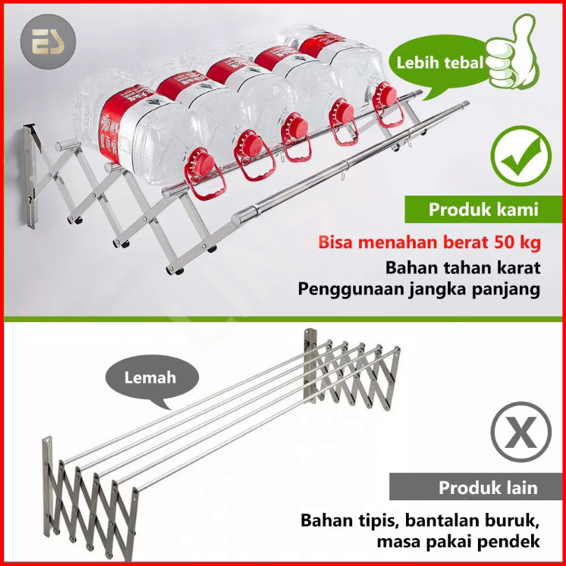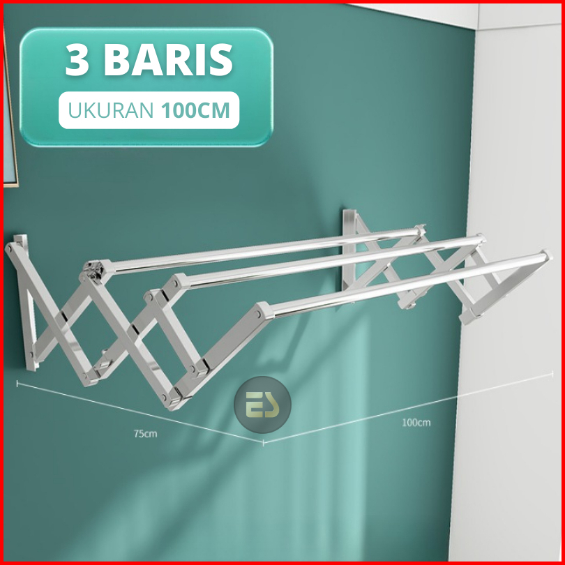 Es Jemuran Baju Tempel Dinding Jemuran Pakaian Lipat Stainless Steel