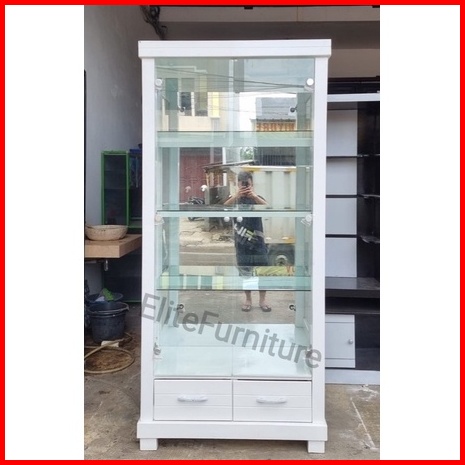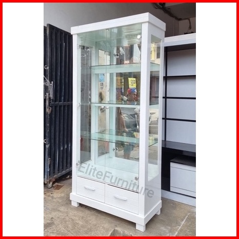 Pajangan Kaca 2pintu Lemari Pajangan Kaca Lemari Display Showcase Pajangan Full Kaca Putih