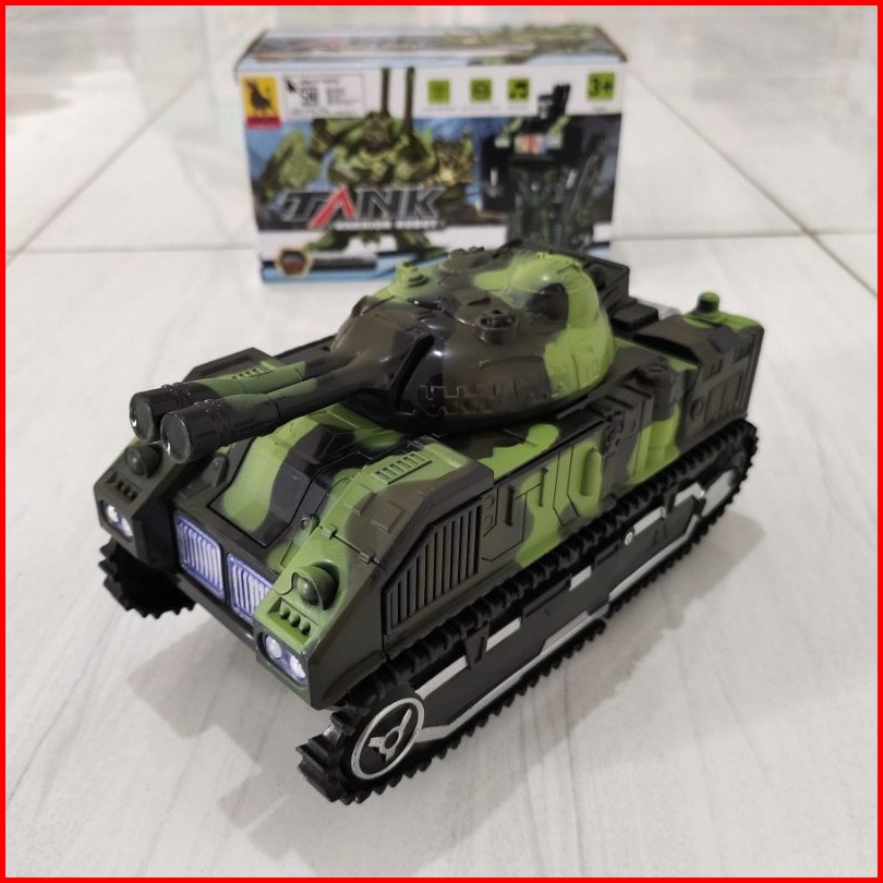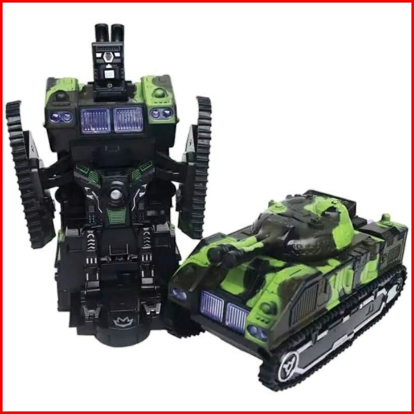 Mainan Tank Bisa Berubah Jadi Robot Otomatis Jalan Lampu Menyala Bersuara Transformer