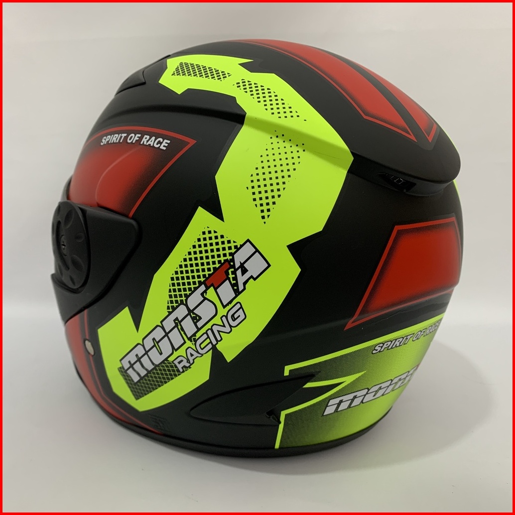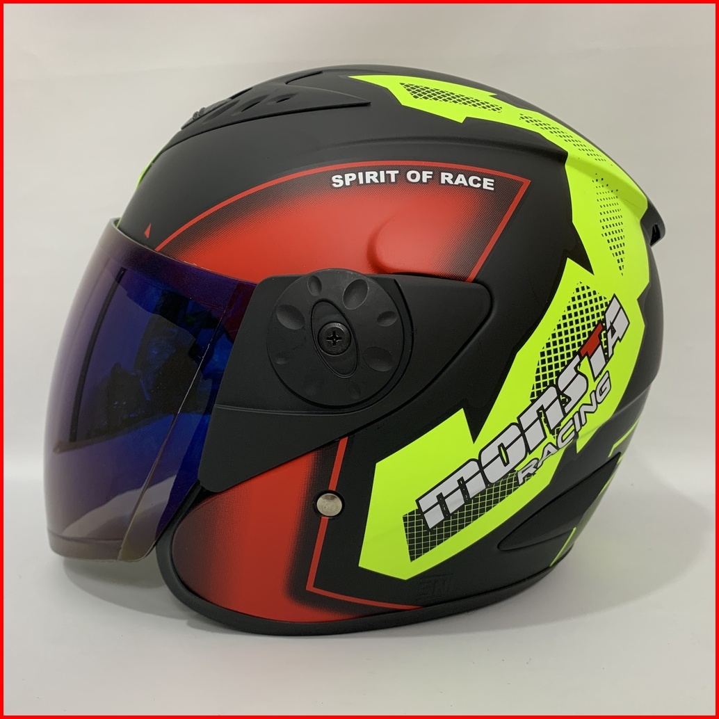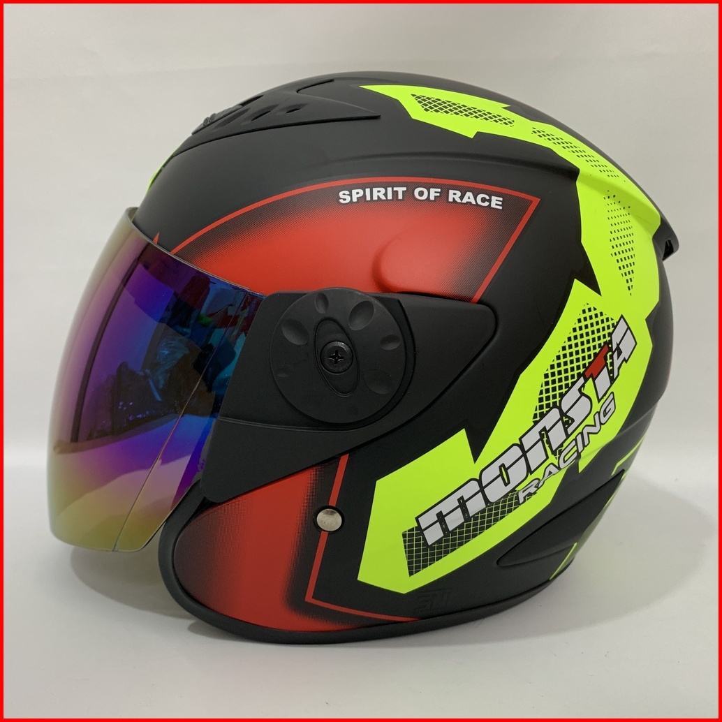 Helm Vision Monsta X13 Merah Kuning Doff - Kaca Iridium Silver Pelangi Rainbow Helem Helmet Bxp