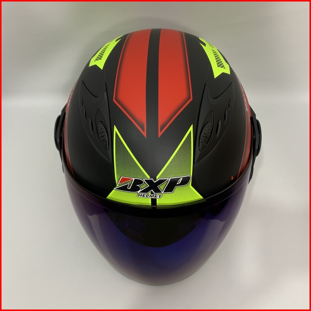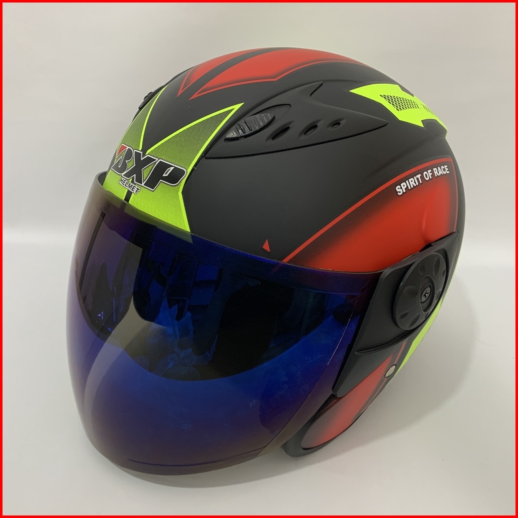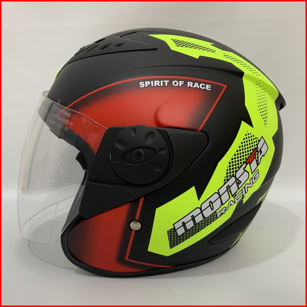 Helm Vision Monsta X13 Merah Kuning Doff - Kaca Iridium Silver Pelangi Rainbow Helem Helmet Bxp