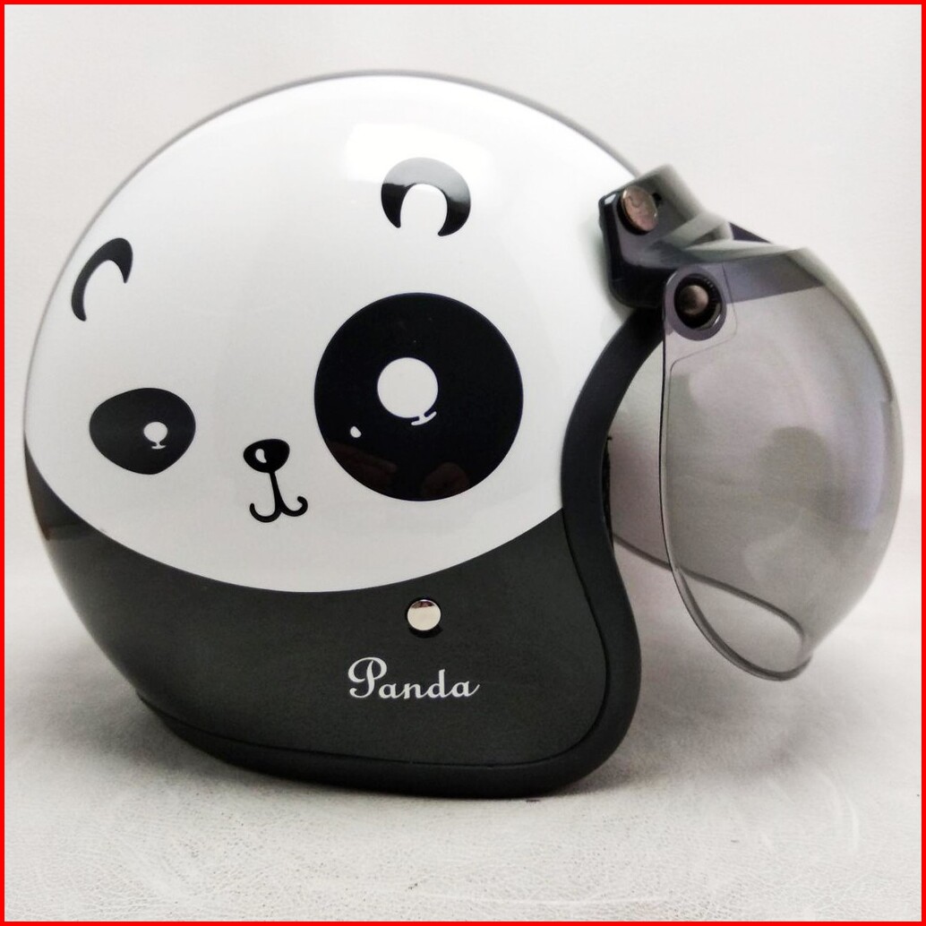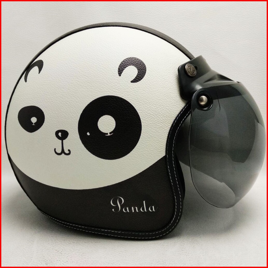 Helm Bogo Retro Kulit Motif Black Panda Klasik Kaca Bubble Halfface Helmet Hbd150