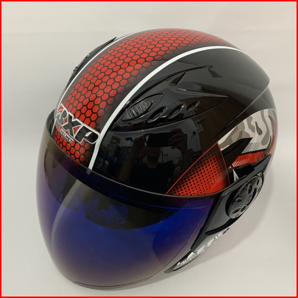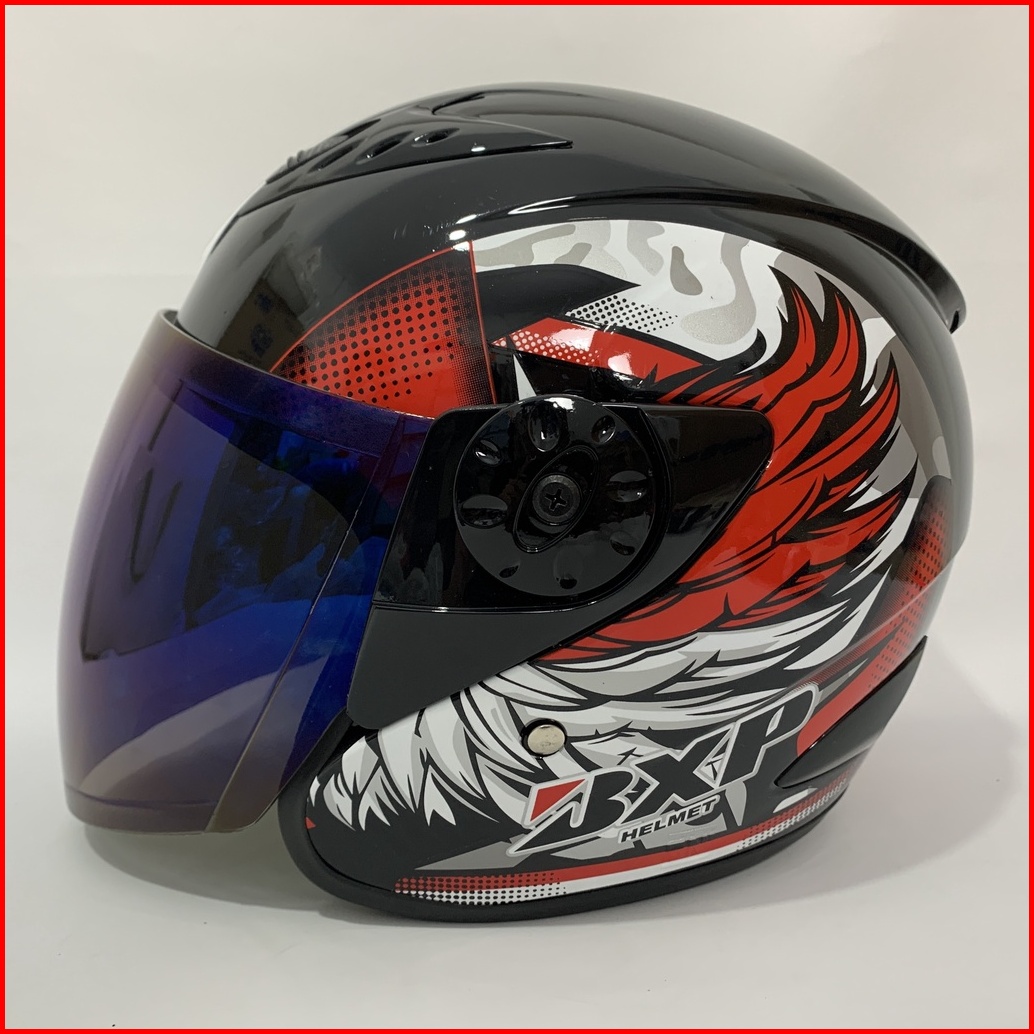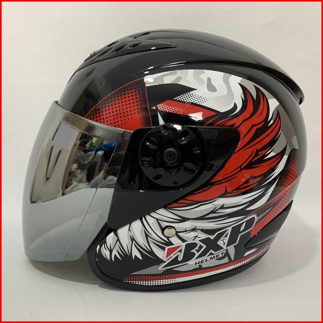 Helm Vision Sayap Merah Putih Hitam Glossy - Kaca Iridium Silver Pelangi Rainbow Helem Helmet Bxp