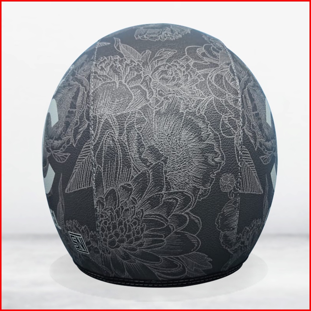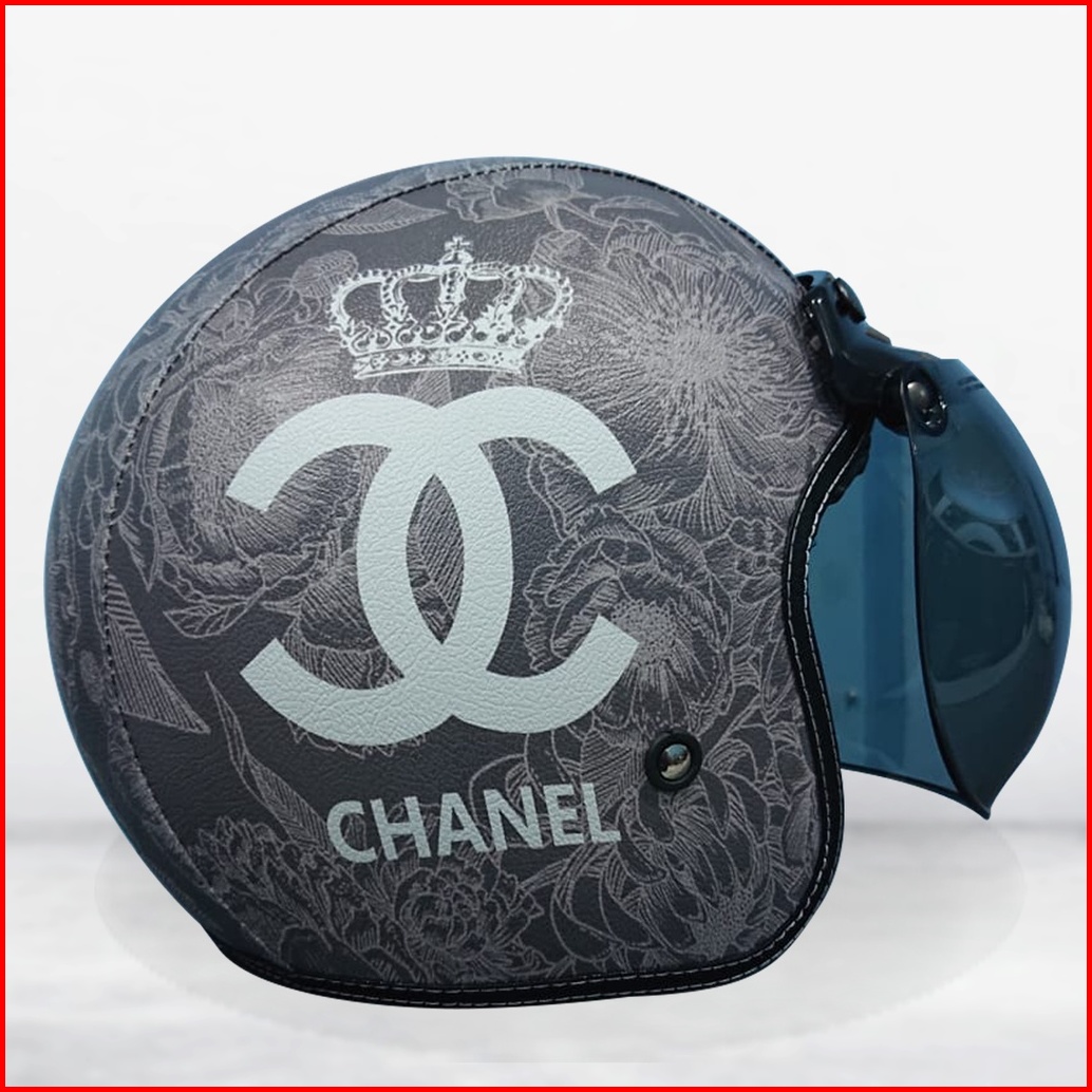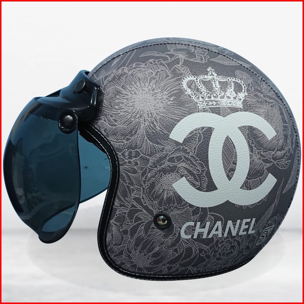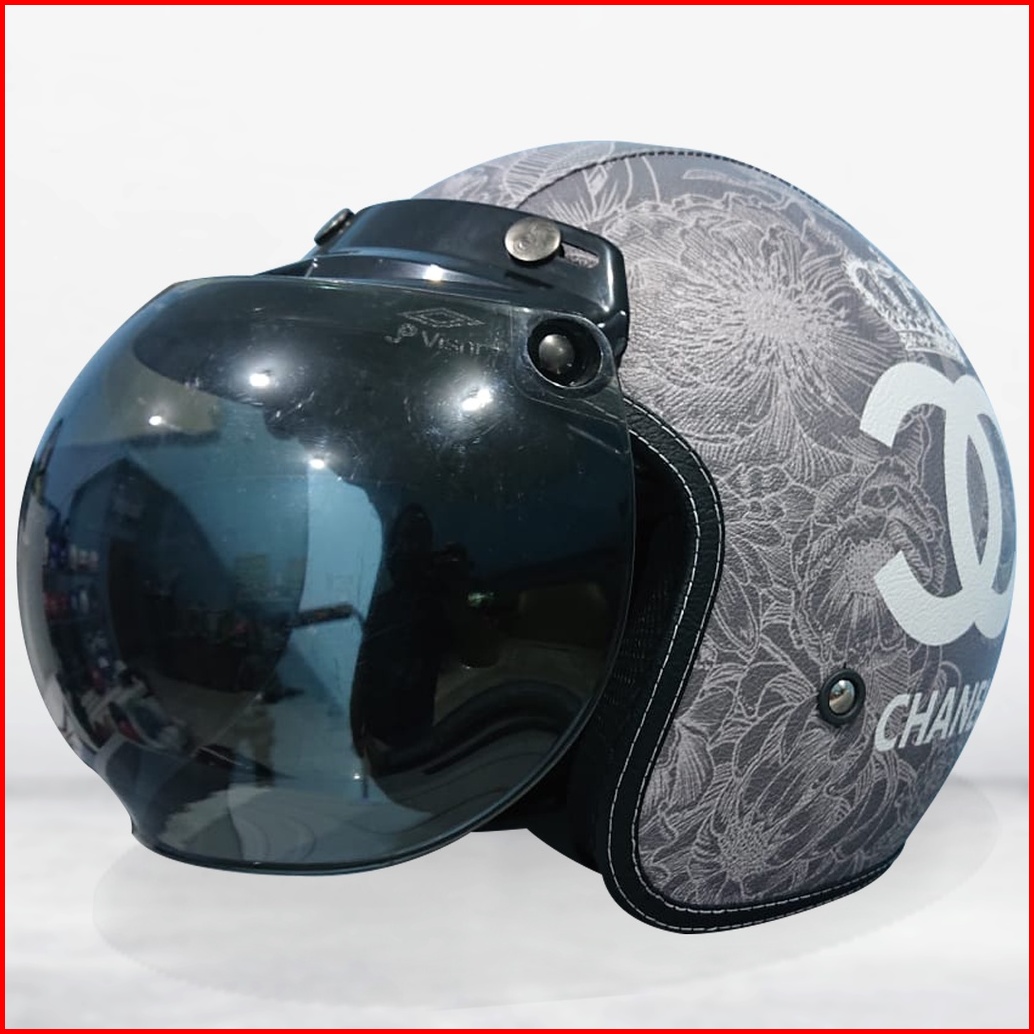 Helm Retro Bogo Kulit Motif Chanel Kaca Bubble Halfface