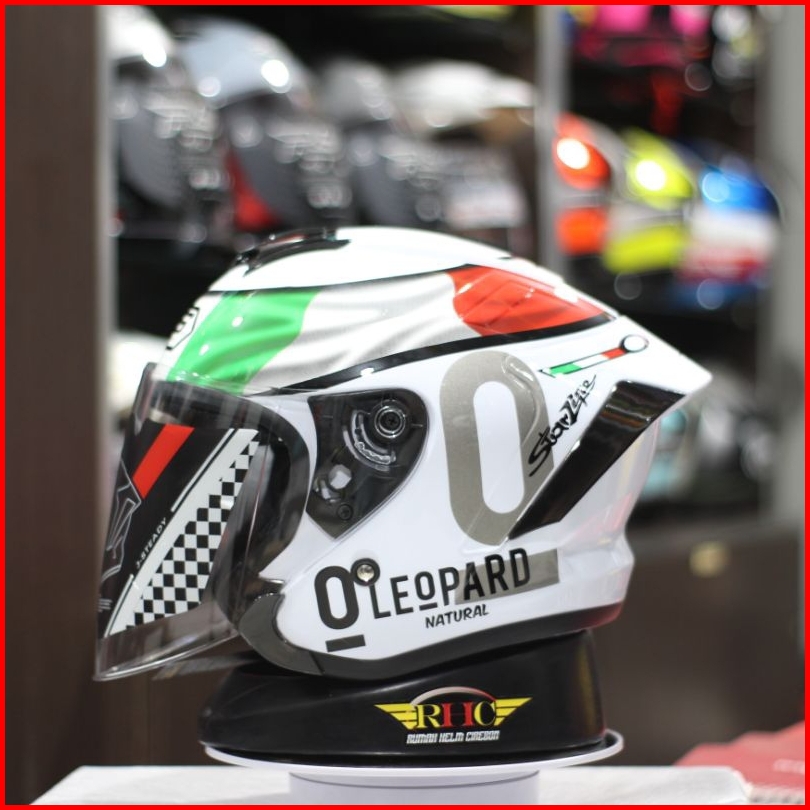 Helm Js Armor Motif Leopard Visor Clear Ukuran M-xl