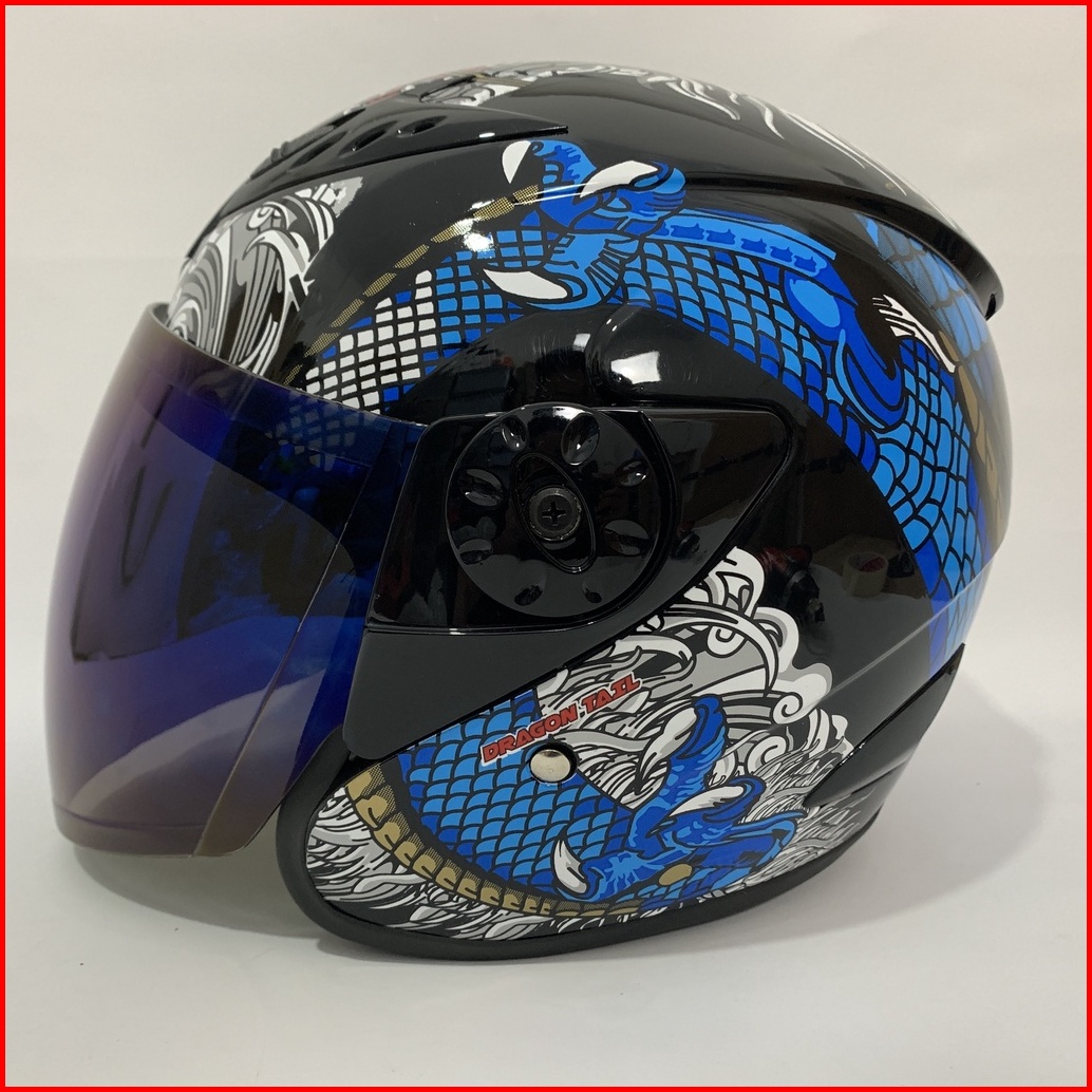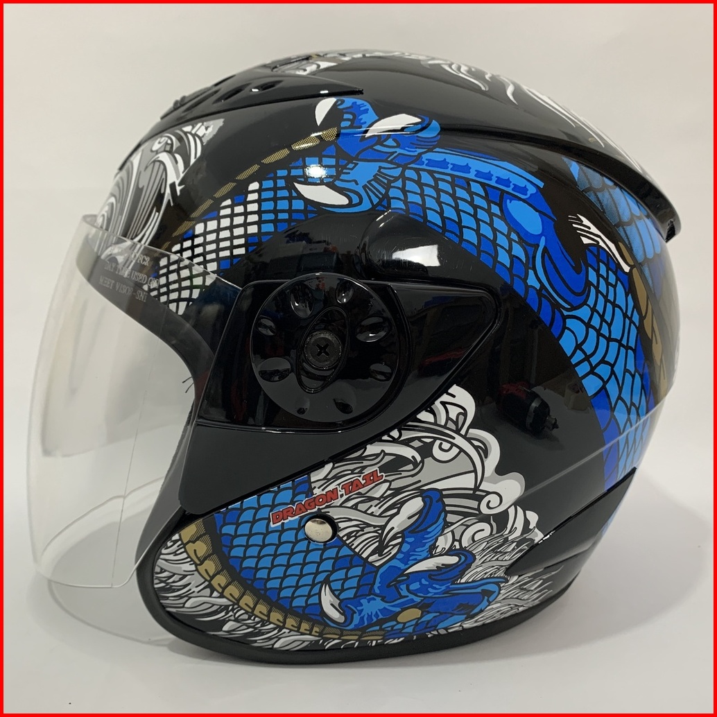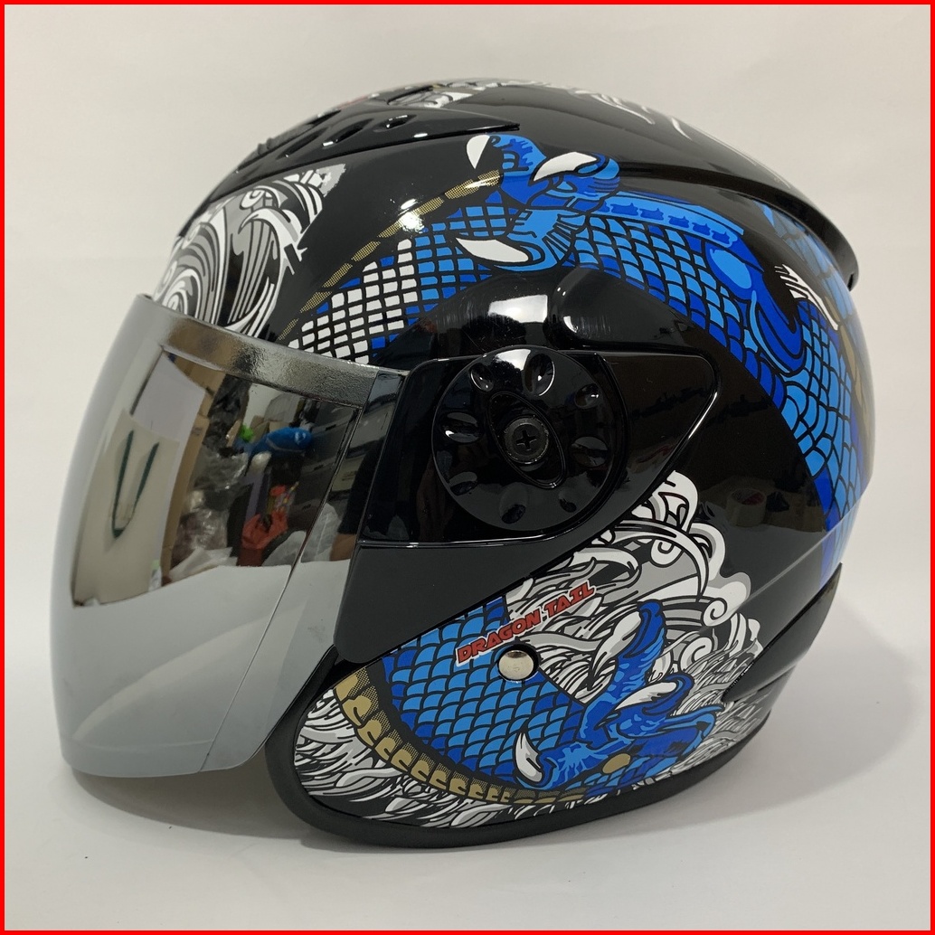 Helm Vision Dragon Biru Hitam Glossy - Kaca Iridium Silver Pelangi Rainbow Helem Helmet Bxp