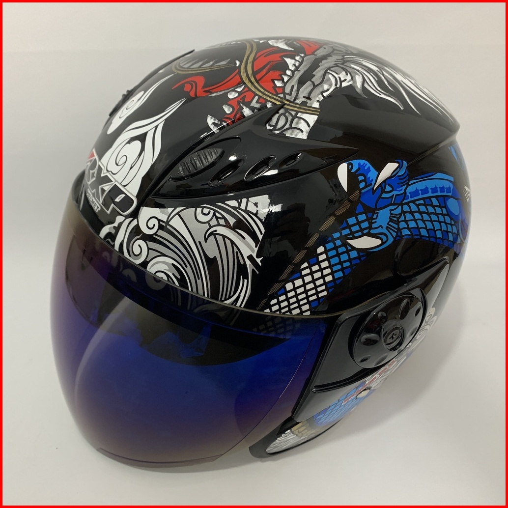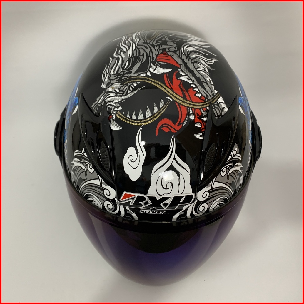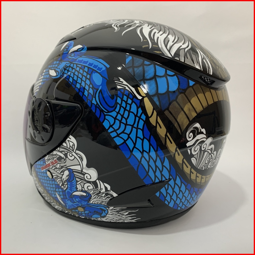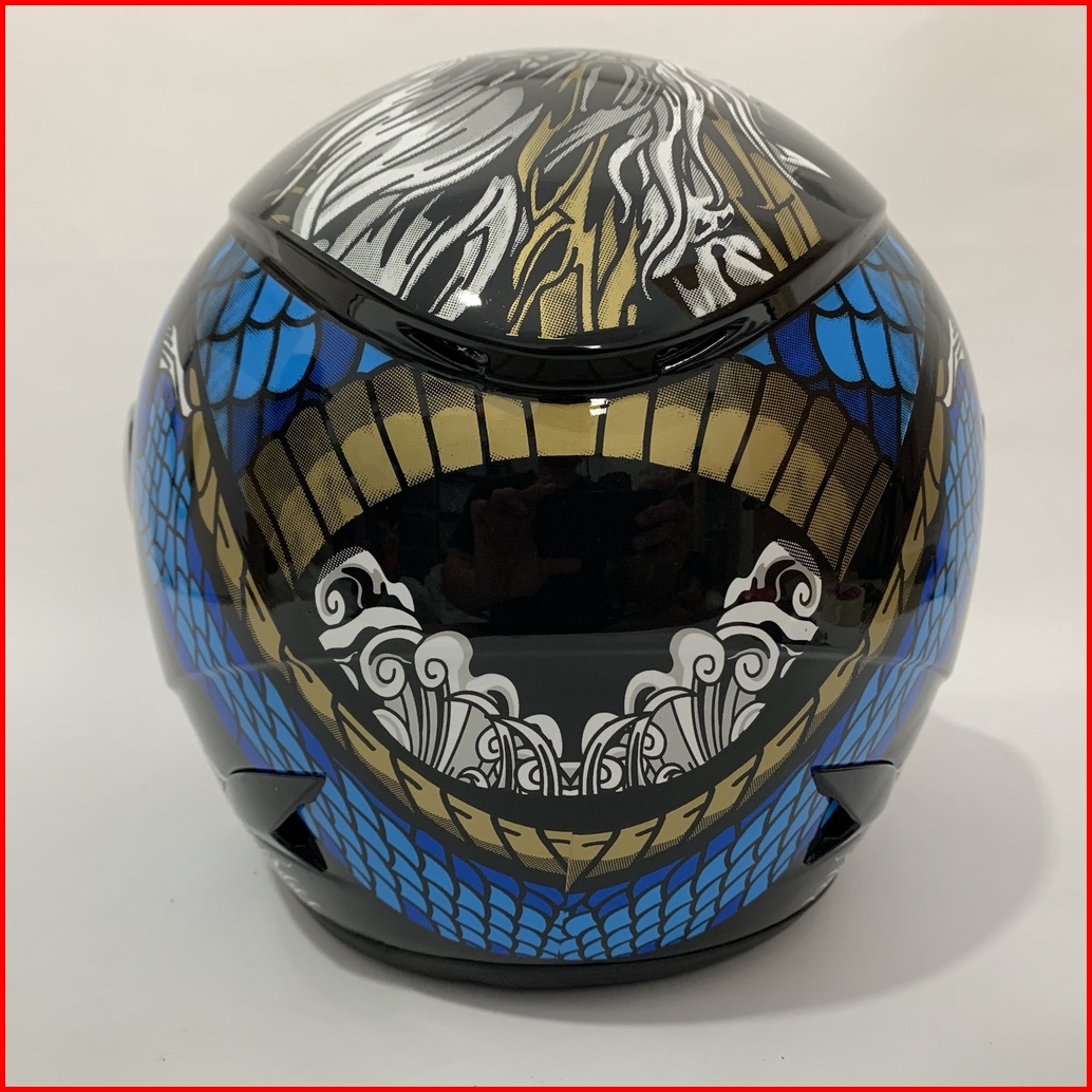 Helm Vision Dragon Biru Hitam Glossy - Kaca Iridium Silver Pelangi Rainbow Helem Helmet Bxp