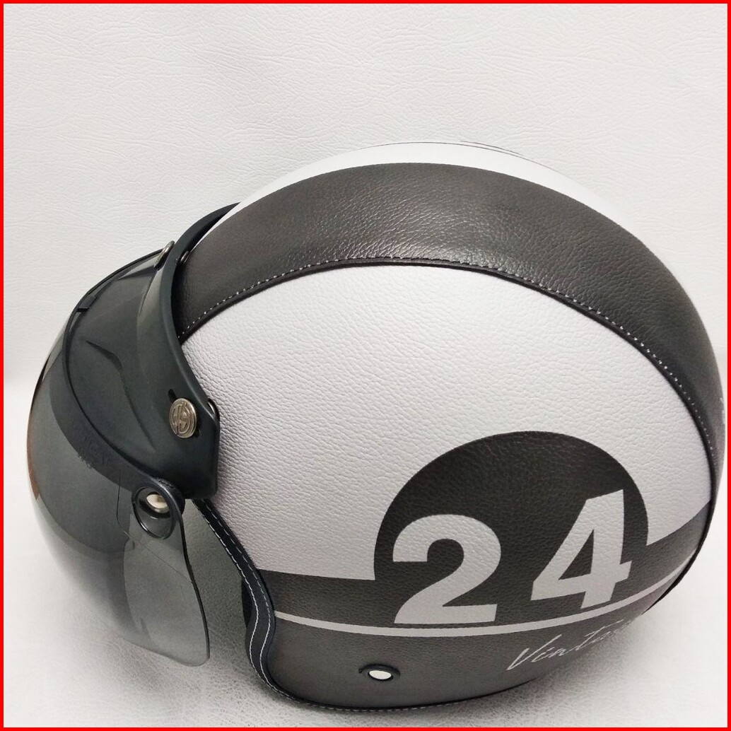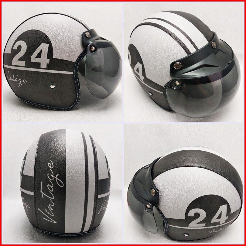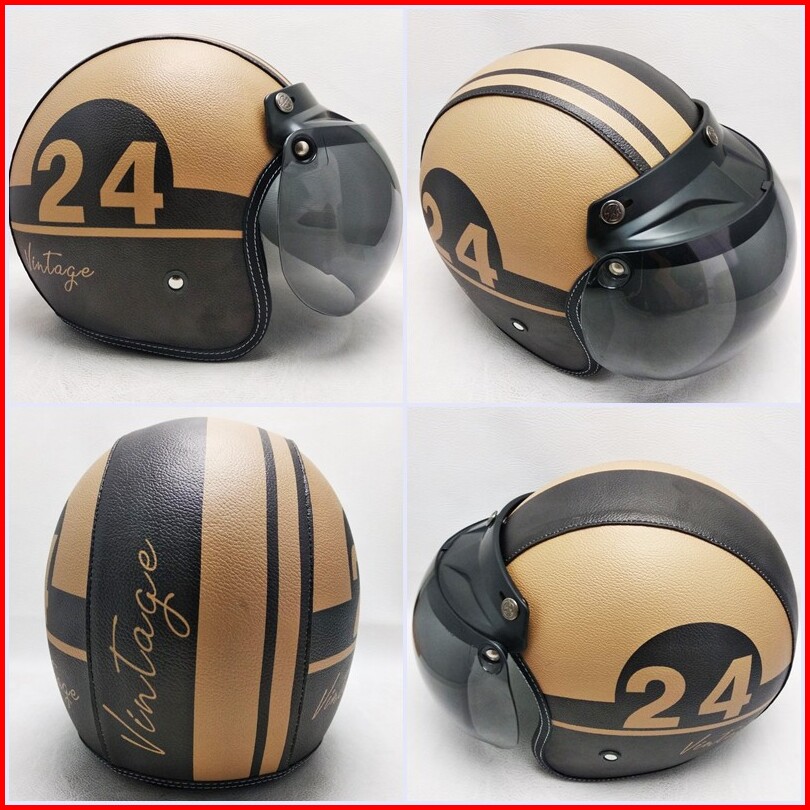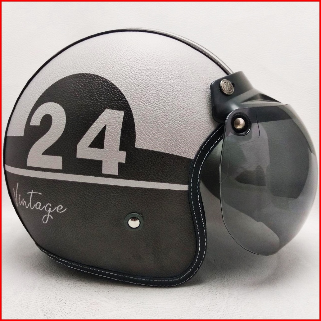 Helm Retro Bogo Kulit Motif Logo 24 Vintage Kaca Bubble Halfface