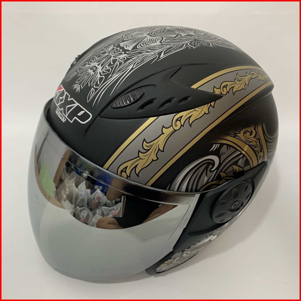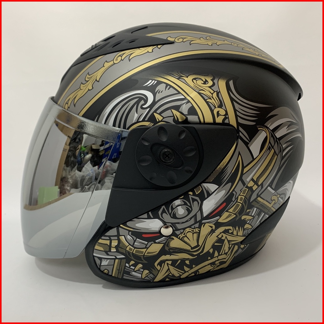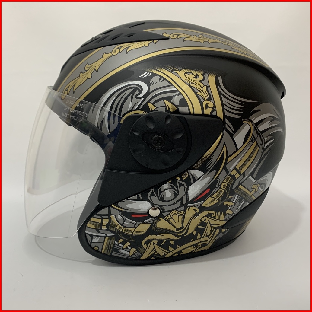 Helm Vision Samurai Hitam Doff - Kaca Iridium Silver Pelangi Rainbow Helem Helmet Bxp