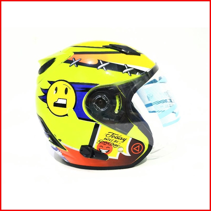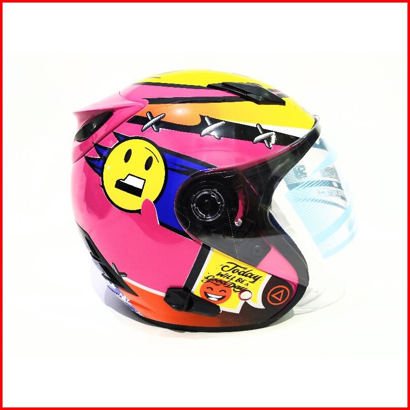 Helm Arl Centro Double Visor Emoji Smile Pink Half Face Sni.