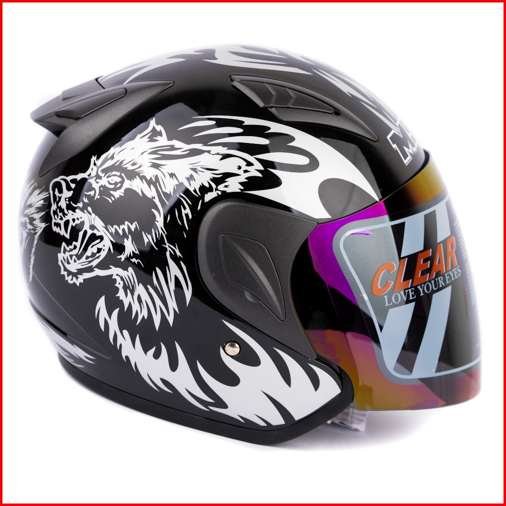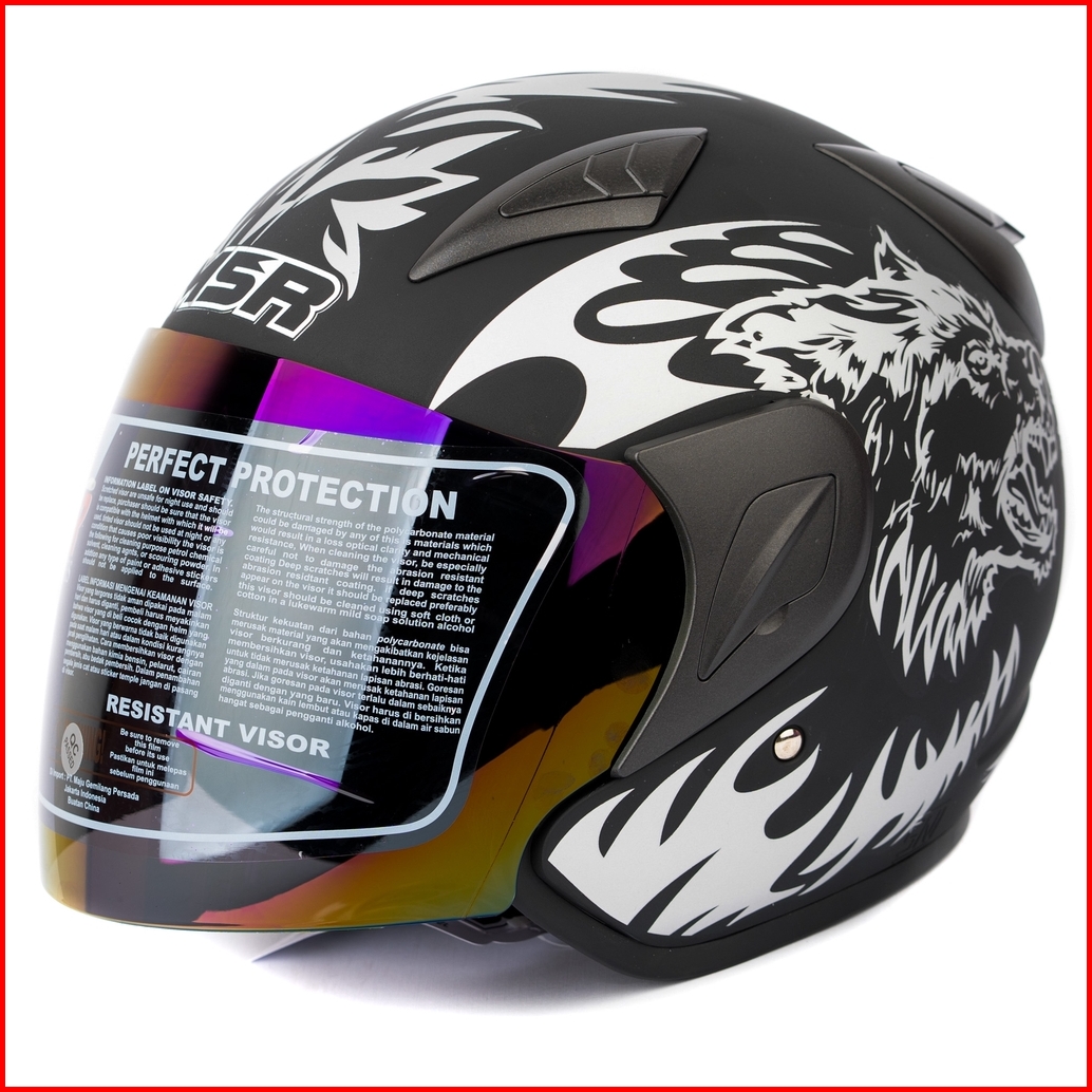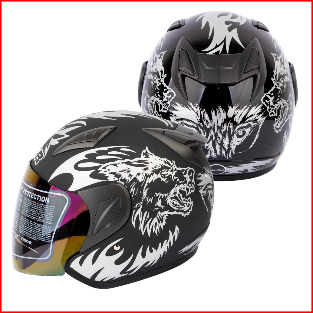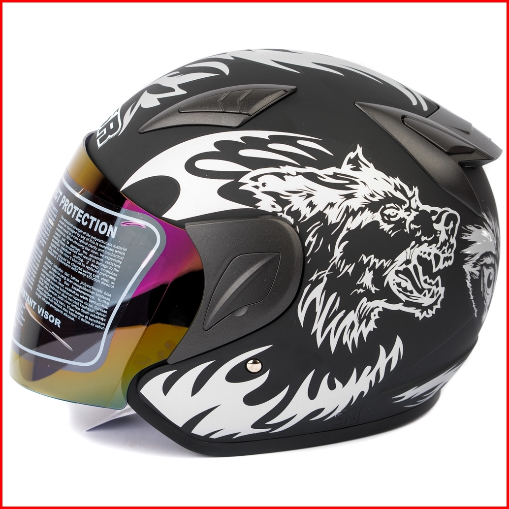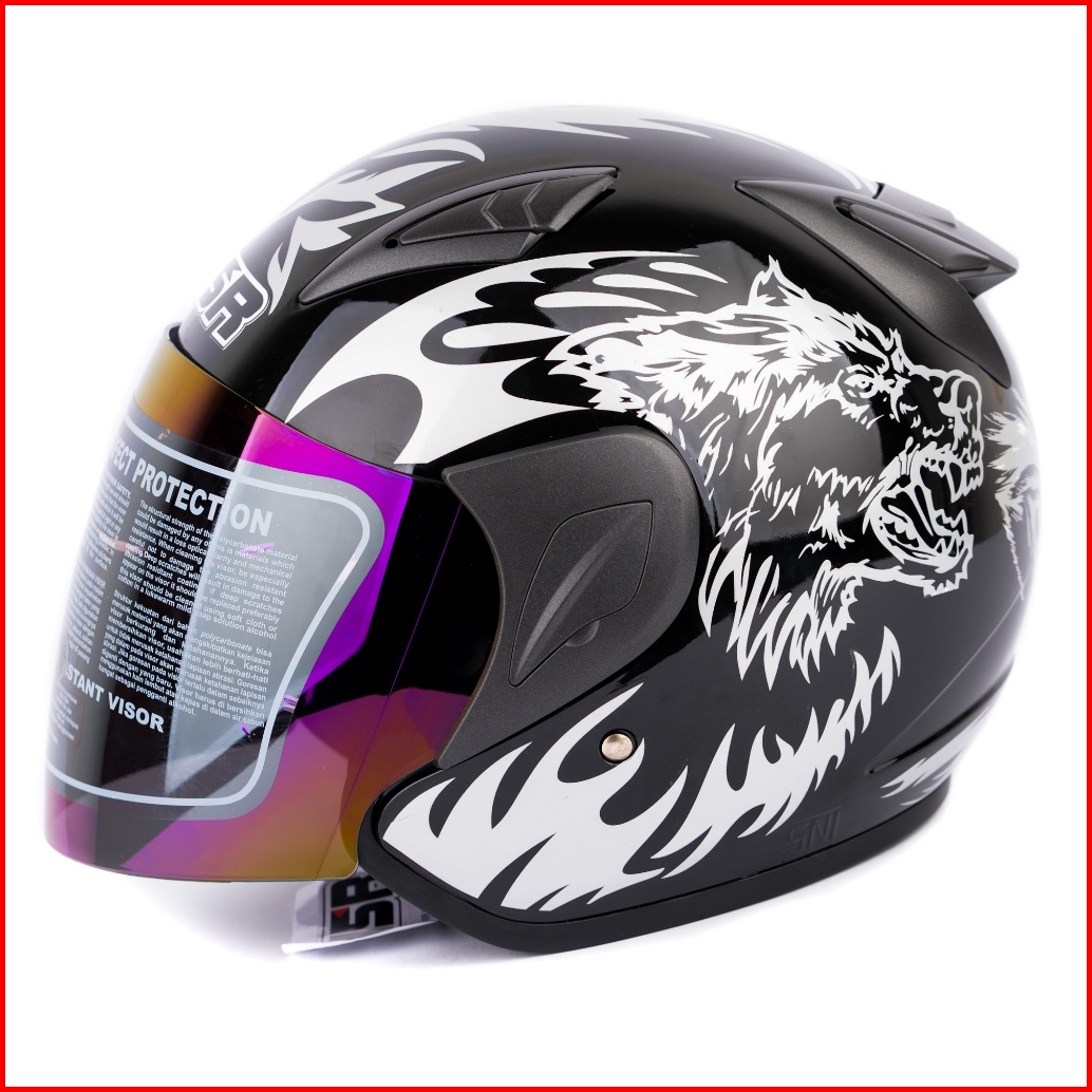 Helm Dewasa Javelin Wolf Sni Half Face Kaca Pelangi