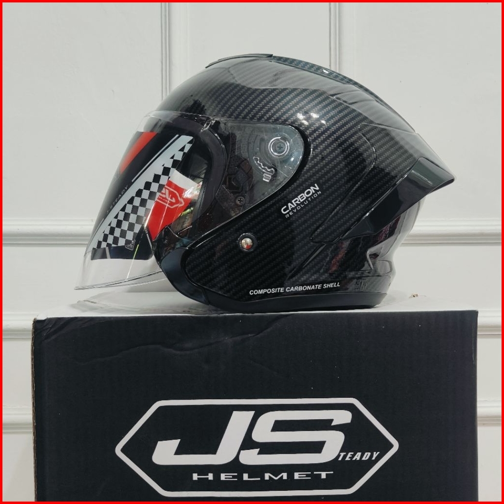Helm Half Face Motif Carbon Dewasa Pria Wanita Paket Ganteng Free Paking Kardus Buble Wrap