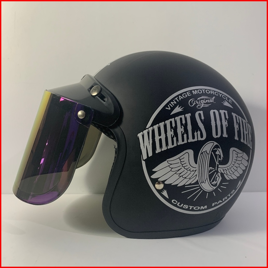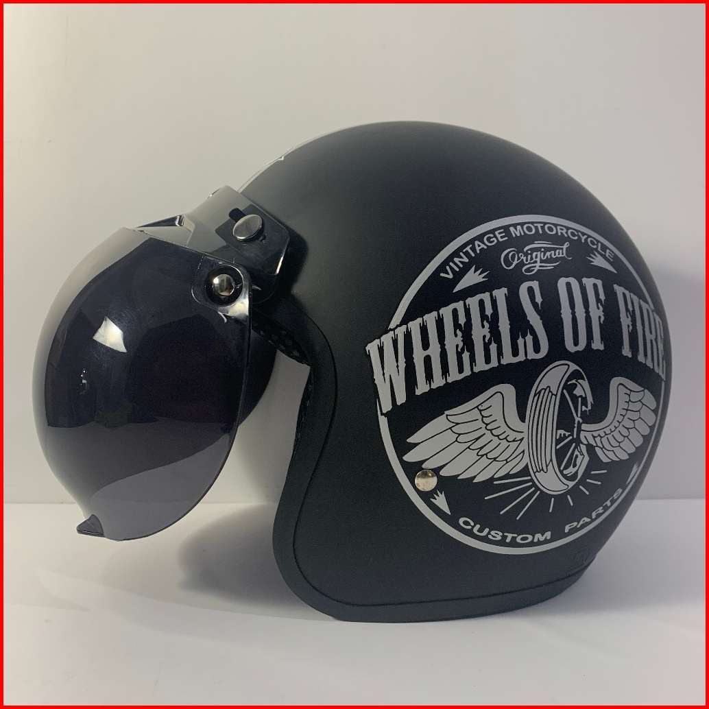 Helm Bogo Wheels Of Fire Silver Hitam Doff - Helem Helmet Sni Dewasa Bxp