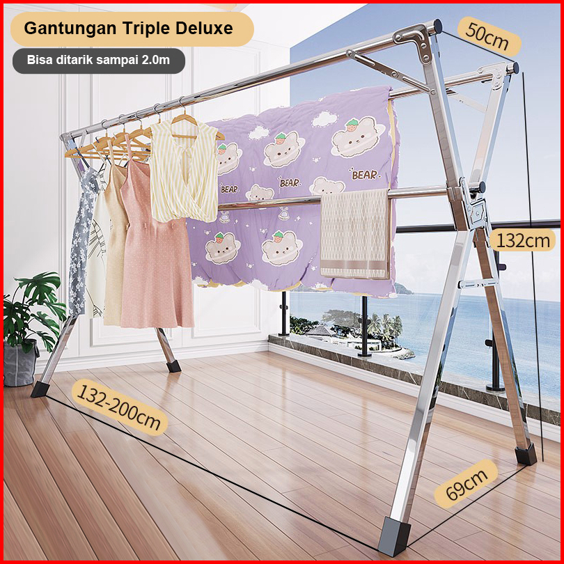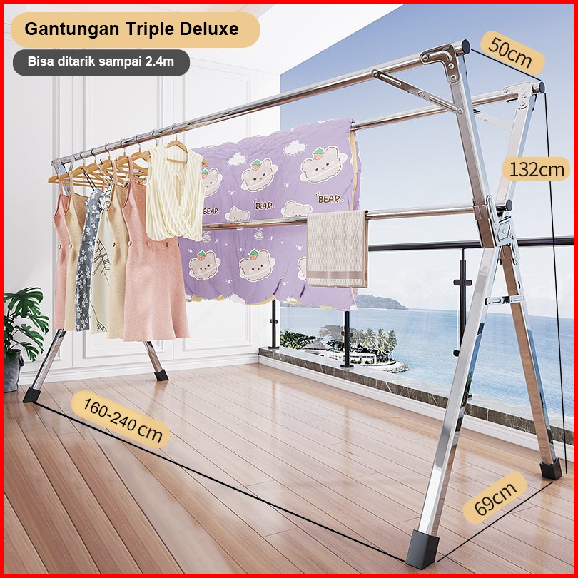 Jemuran Pakaian Anti Karat Kuat Tempat Jemuran Baju Portable Stainles