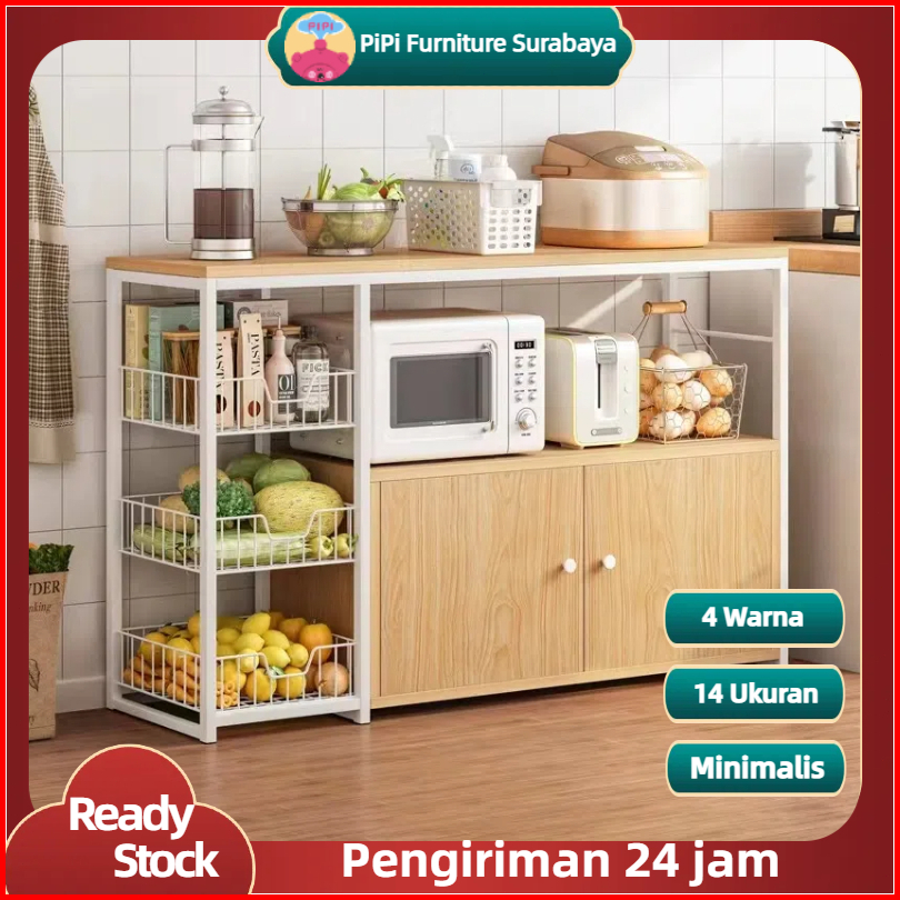 Pipi Furniture Rak Dapur Serbaguna Lemari Dapur Rak Oven Rak Microwave Rak Dapur Kayu Serbaguna