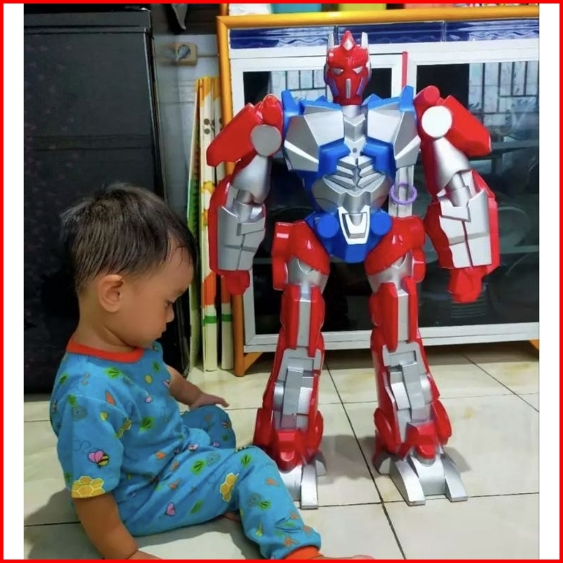 Super Jumbo 80cm Robot Transformer Optimus Combat Suara Nyala Bumblebee Kuning Merah Biru Action Besar Kado Mainan Anak