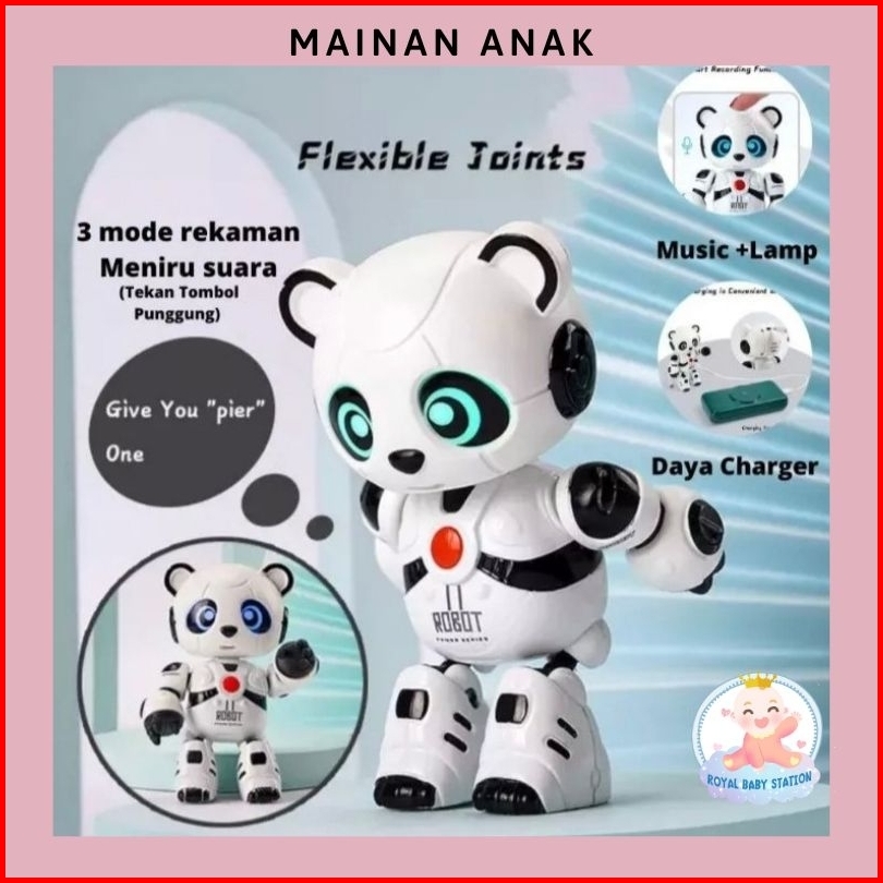 Promo Robot Panda Mainan Anak Peniru Suara Manusia 3 Mode Rekaman Dengan Lampu