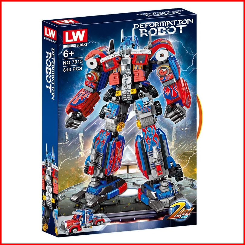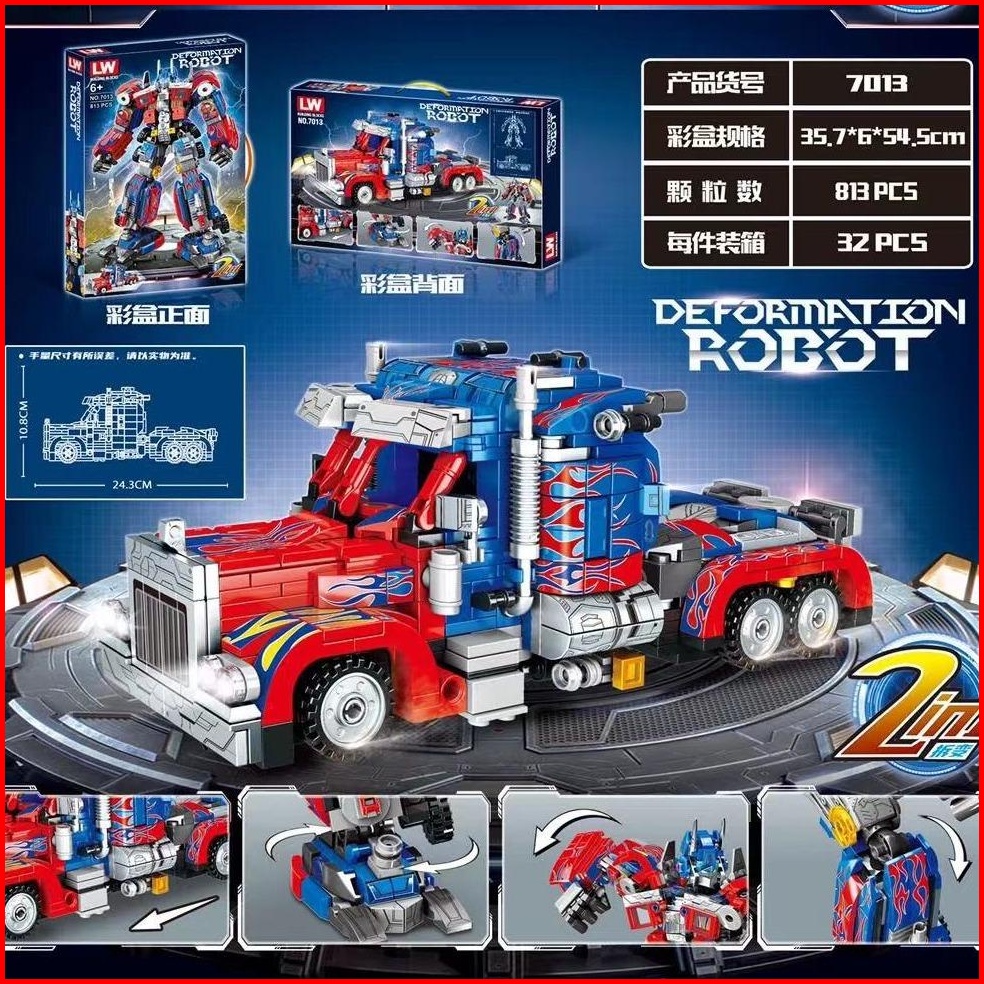Tanpa Box Mainan Anak Edukatif Brick Bongkar Pasang Transformer Robot Optimus Prime Lw7013