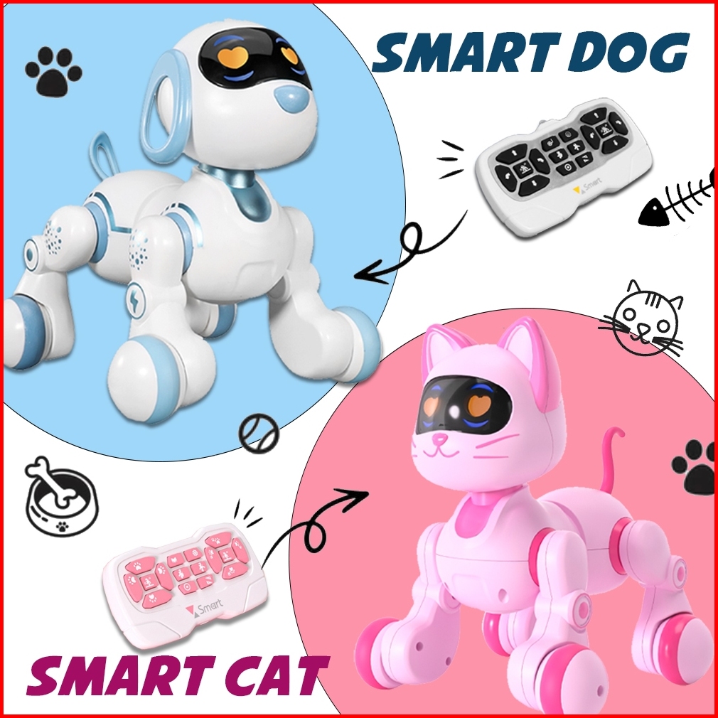 Smart Robot Dog Biru Dan Smart Cat Mainan Anak Cowok Cewek Remote Control Kontrol Kado Hadiah
