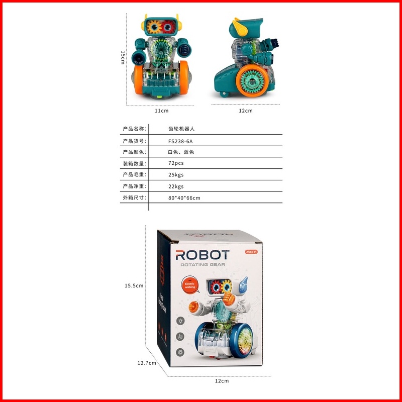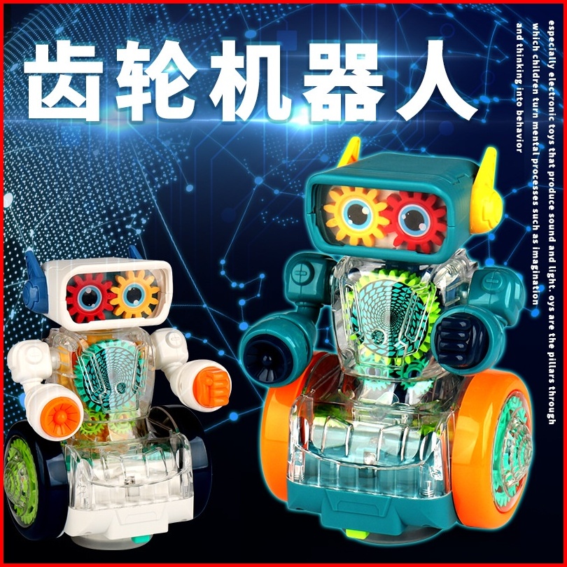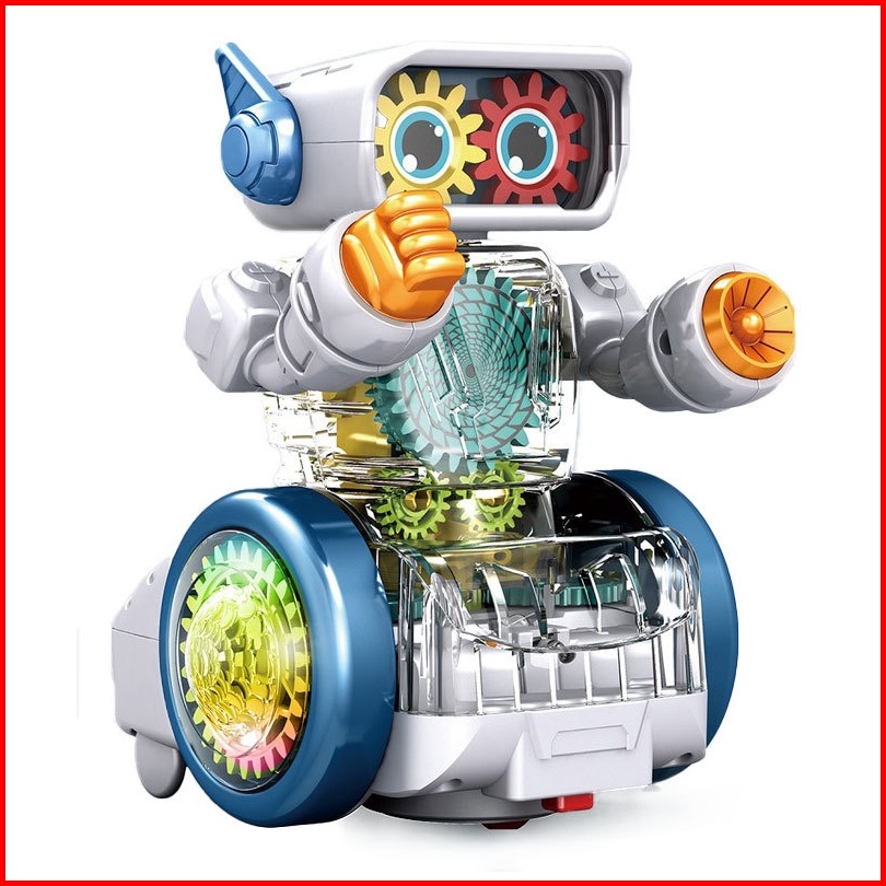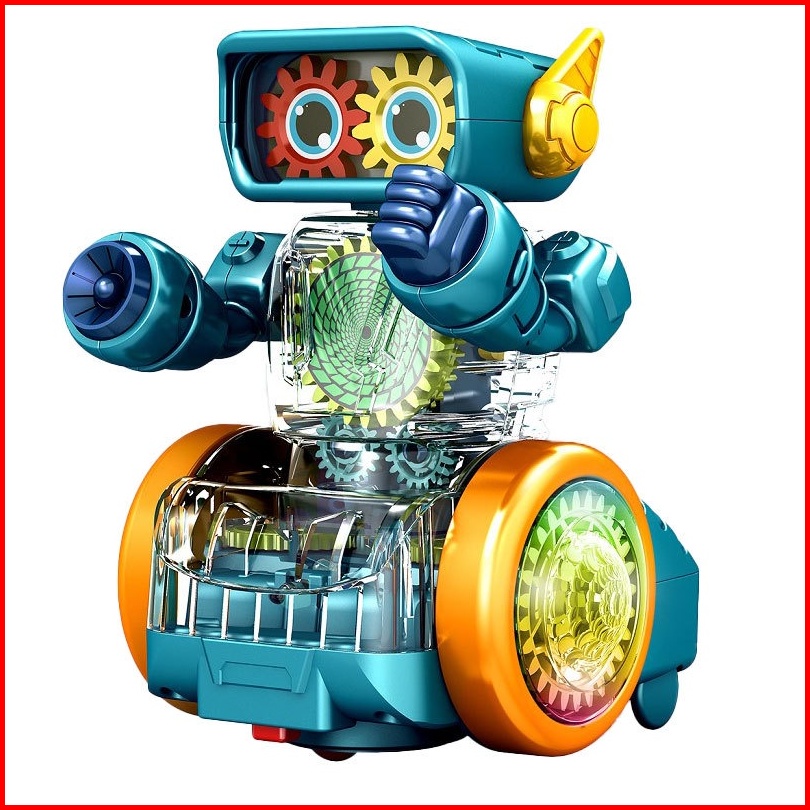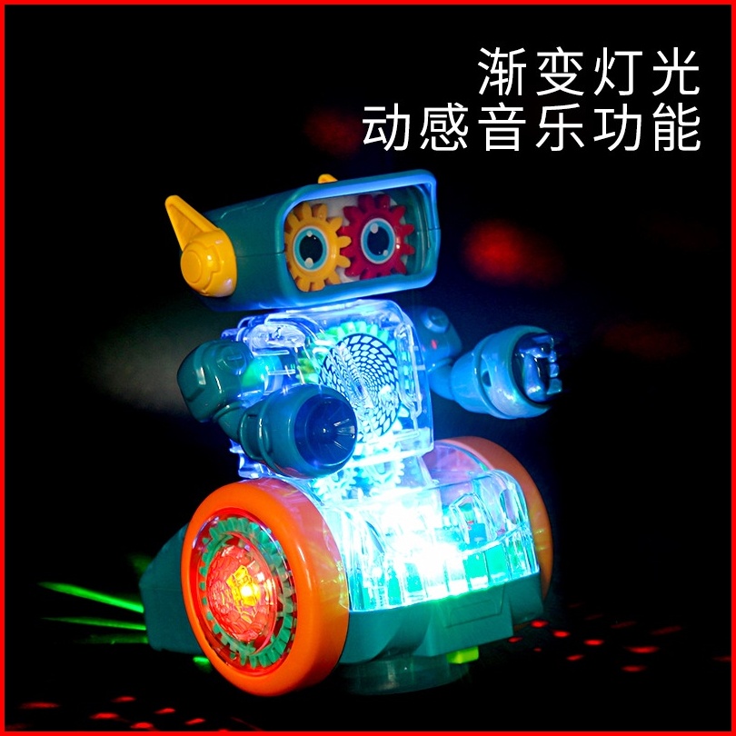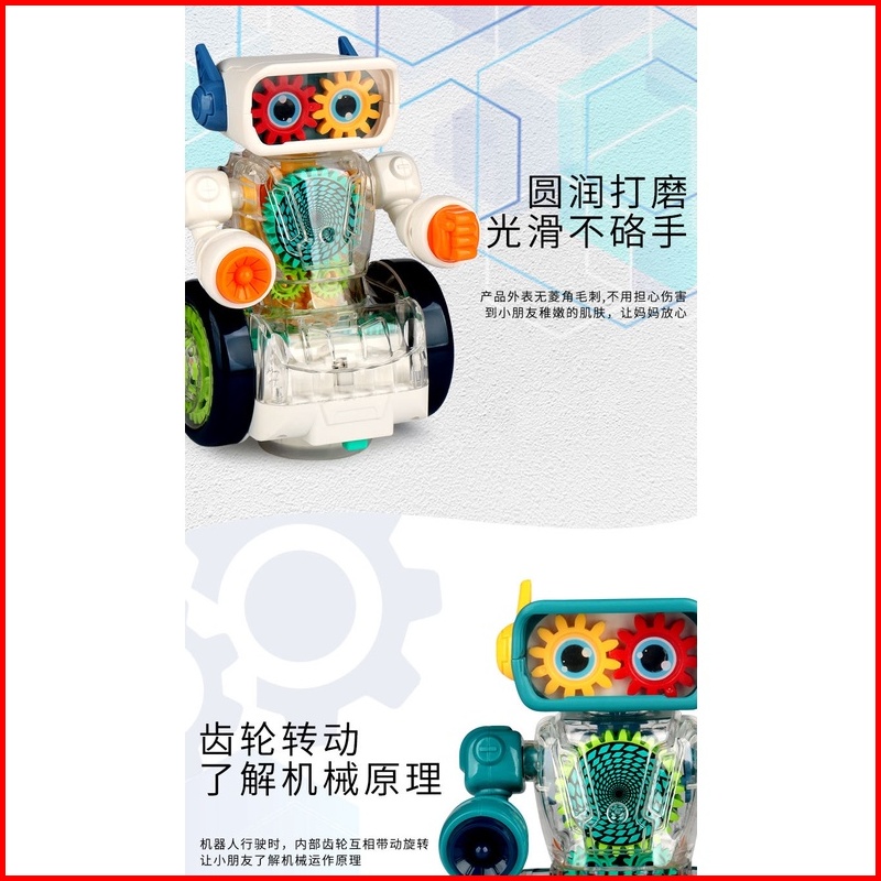 Happytoys.888 B70 Mainan Robot Transparent Gear Light Gear Rotary Robot Lampu Dan Musik