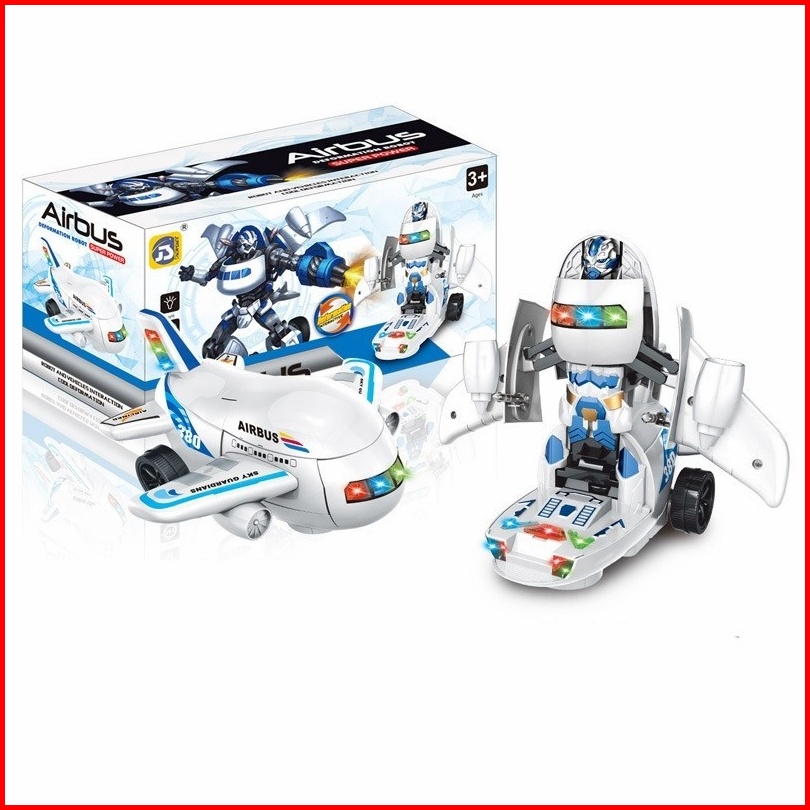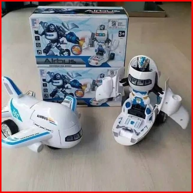 Mainan Anak Pesawat Robot Airbus Deformation Warrior 2in1 Bump And Go Ada Suara Dan Lampu Baterai