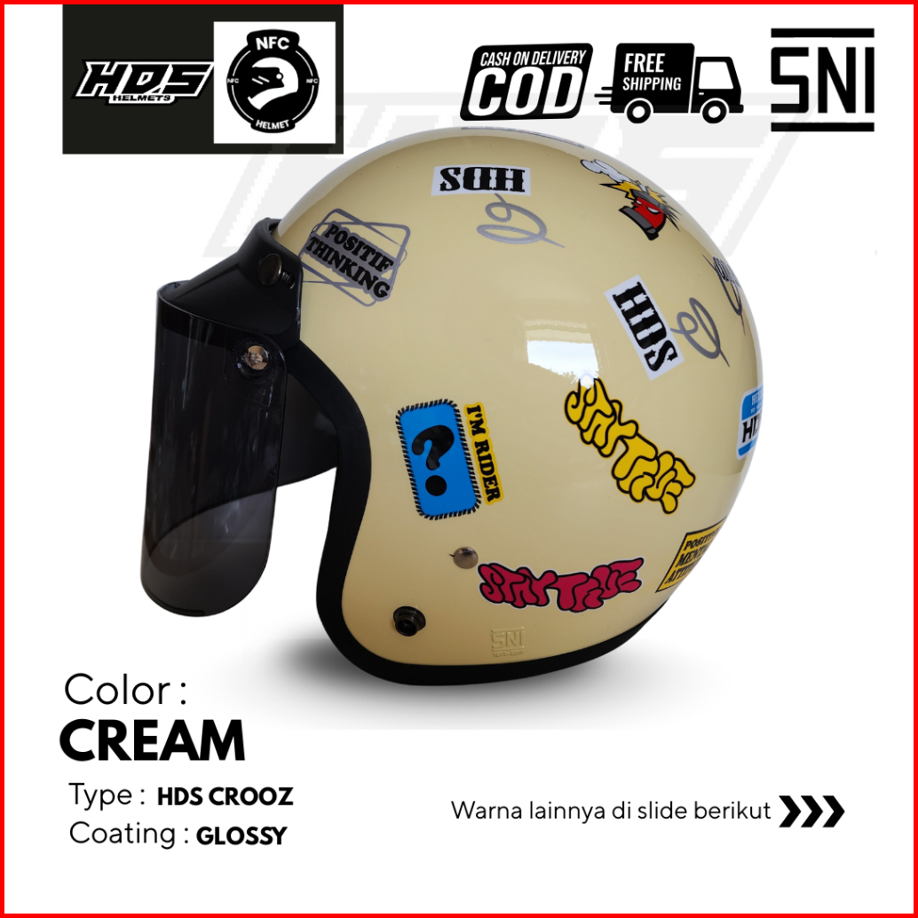 Hds Helmet - Helm Bogo Dewasa Classic Murah Original Crooz Sni - Cowok Cewek Cepol Hijab Hijaber - Retro Style All Size