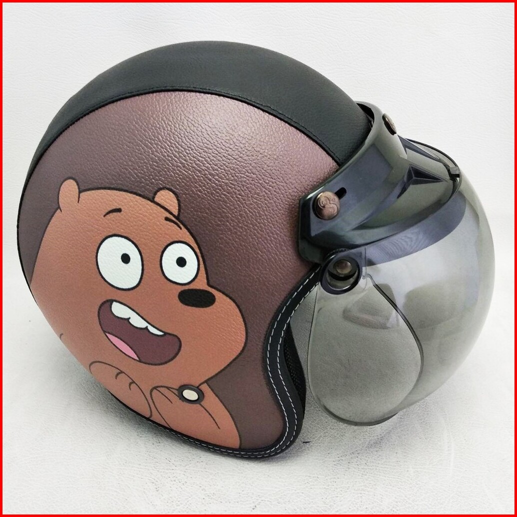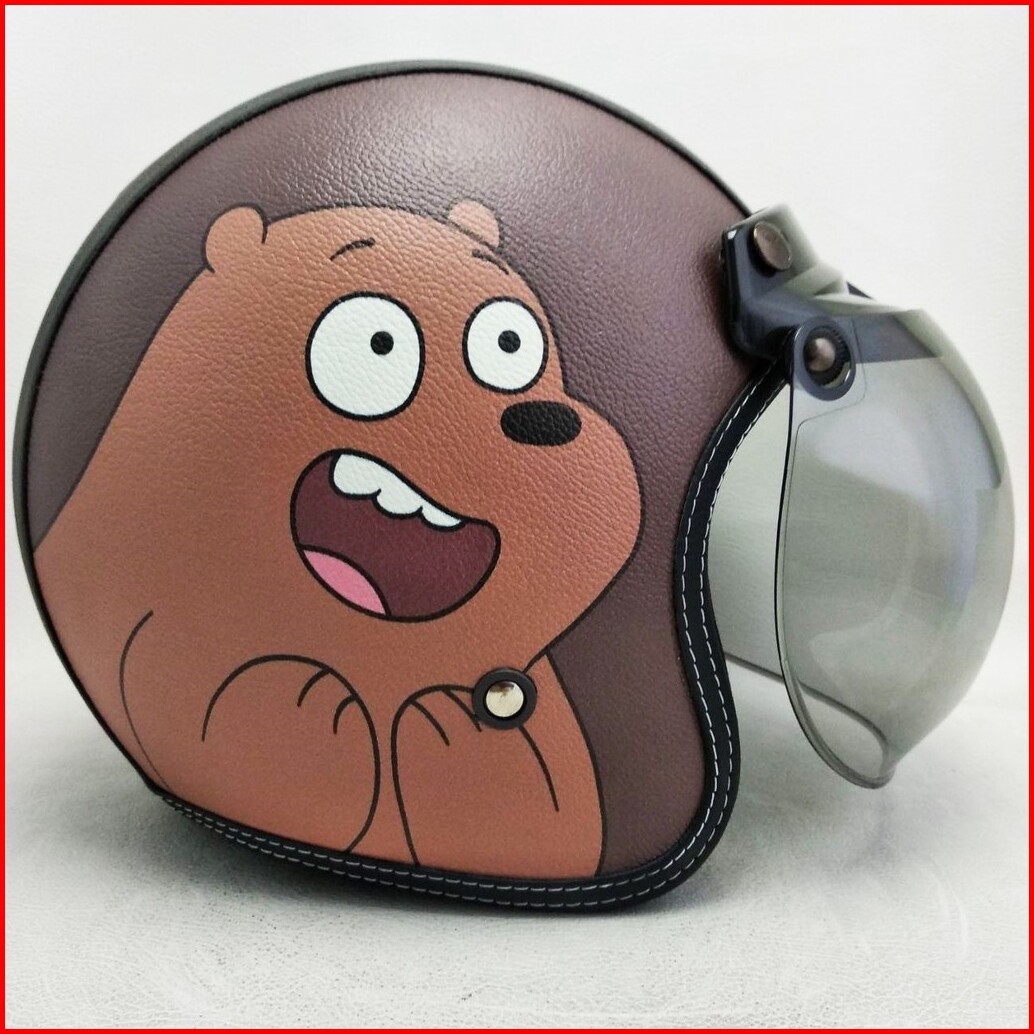 Helm Bogo Retro Kulit Motif Brown Grizz Bear Klasik Kaca Bubble Halfface