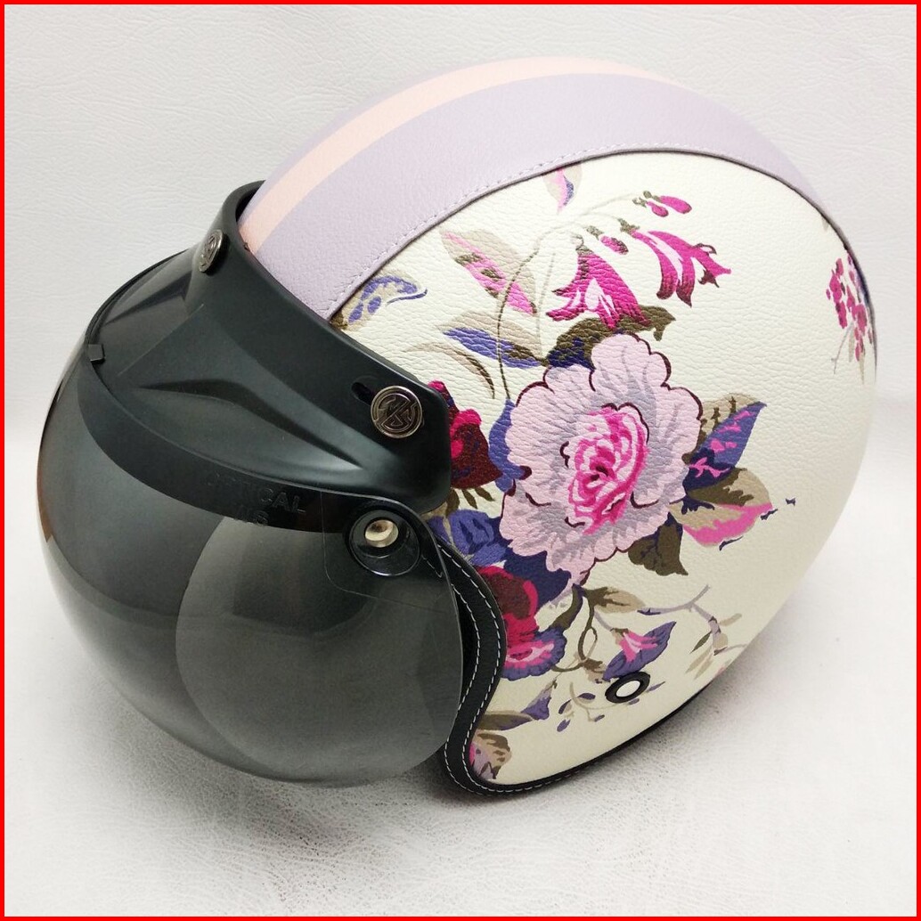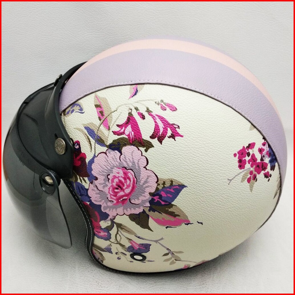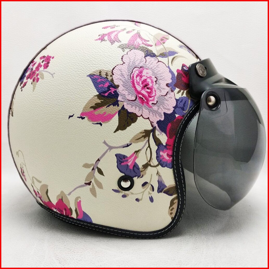 Helm Retro Bogo Kulit Motif Bunga 3 Shabby Chic Klasik Kaca Bubble Halfface
