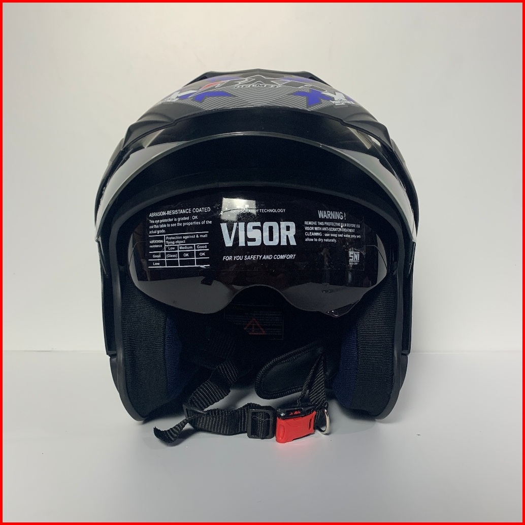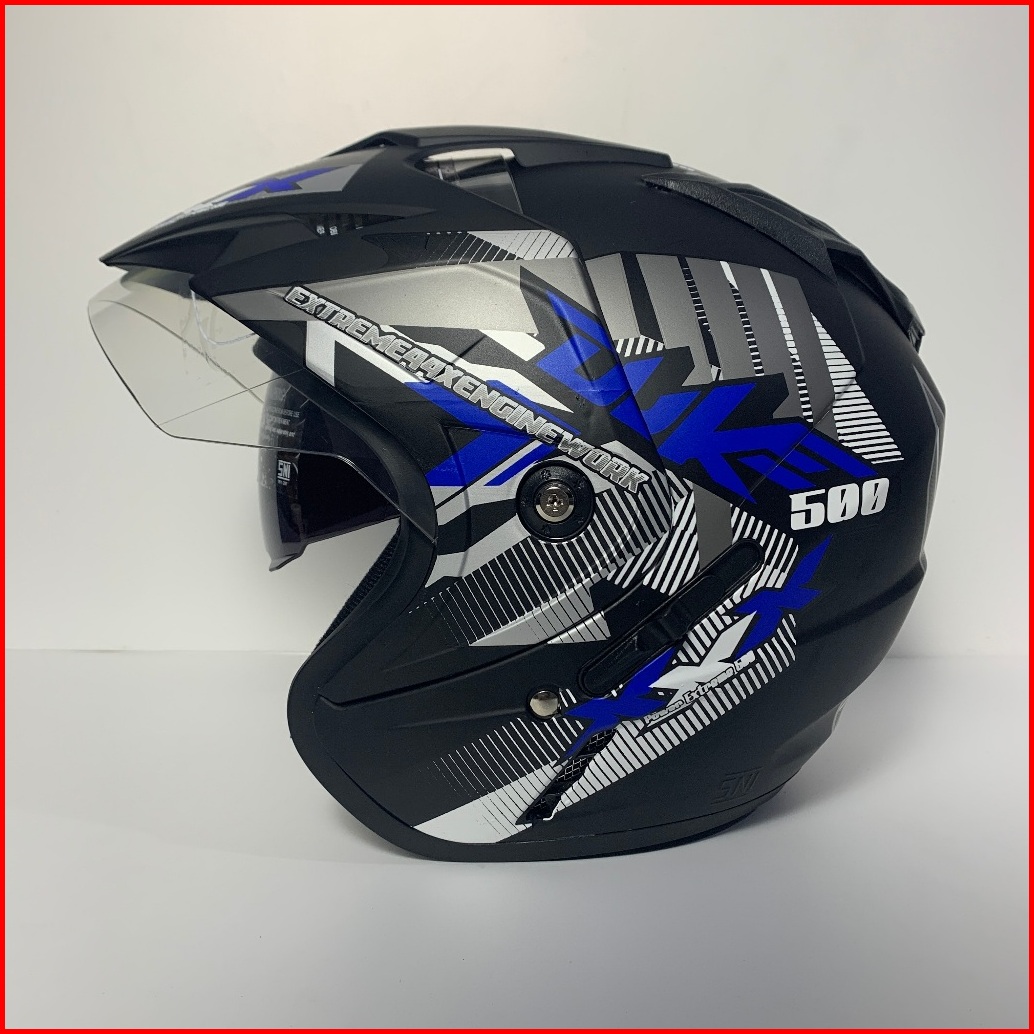 Helm Jp7 Juke Biru Doff - Sni Dewasa Motif Double Visor Helem Helmet Bxp