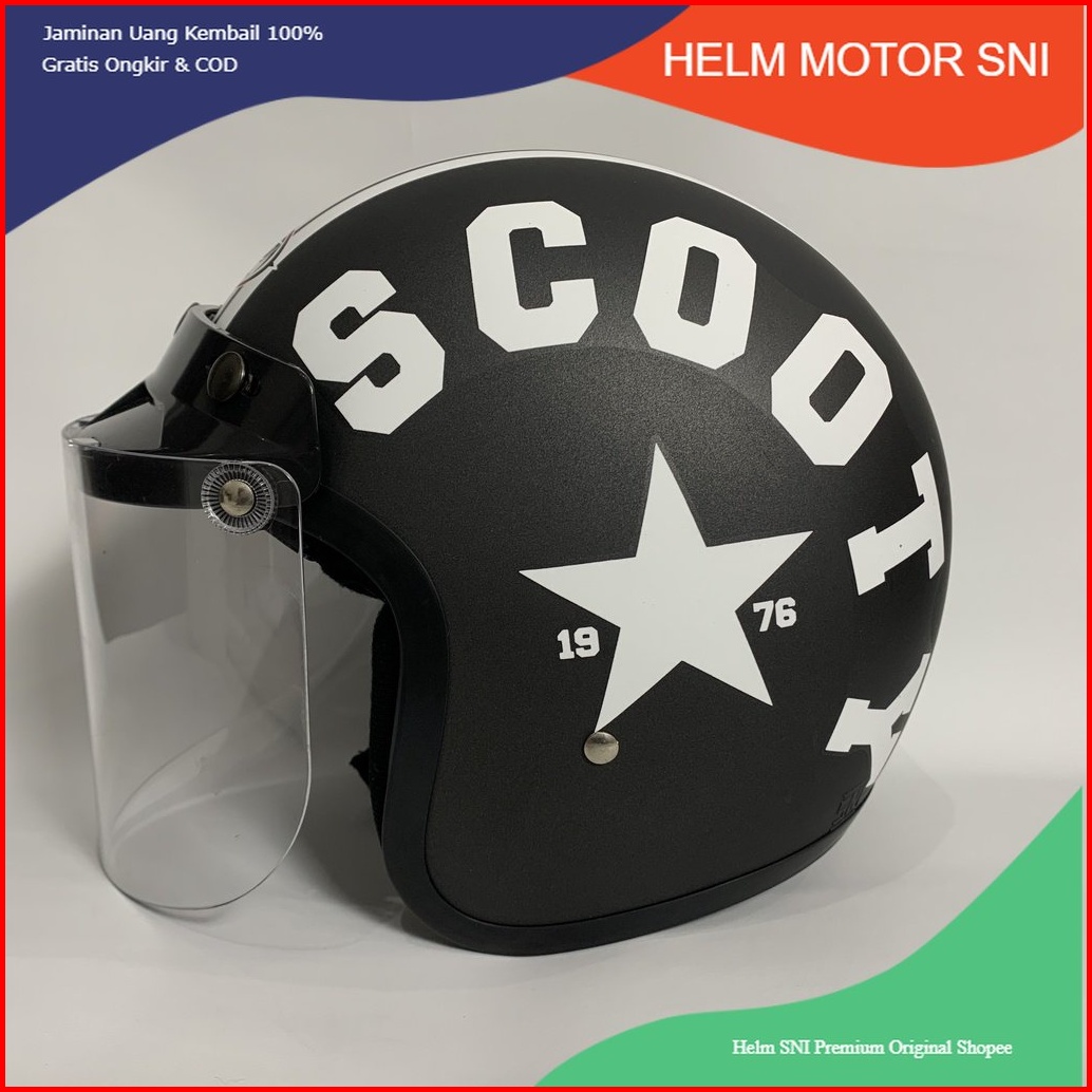 Helm Bogo Scooty Doff Sni Dewasa Retro Motif Pilih Kaca Datar Cembung Cmoke Clear Helem Nuvo Helmet Sni Hel Dewasa Motif