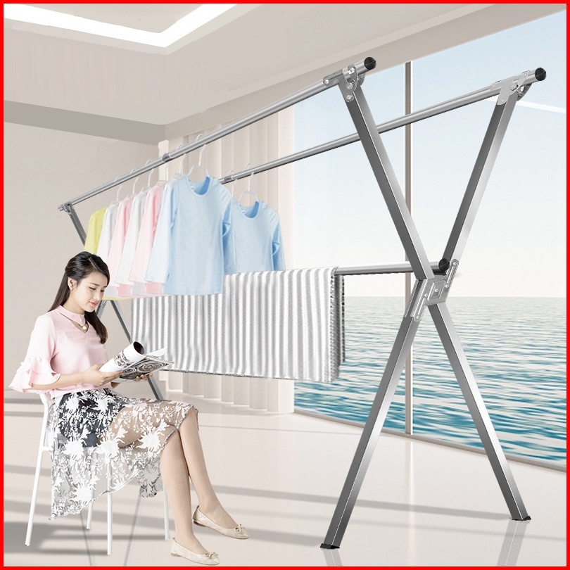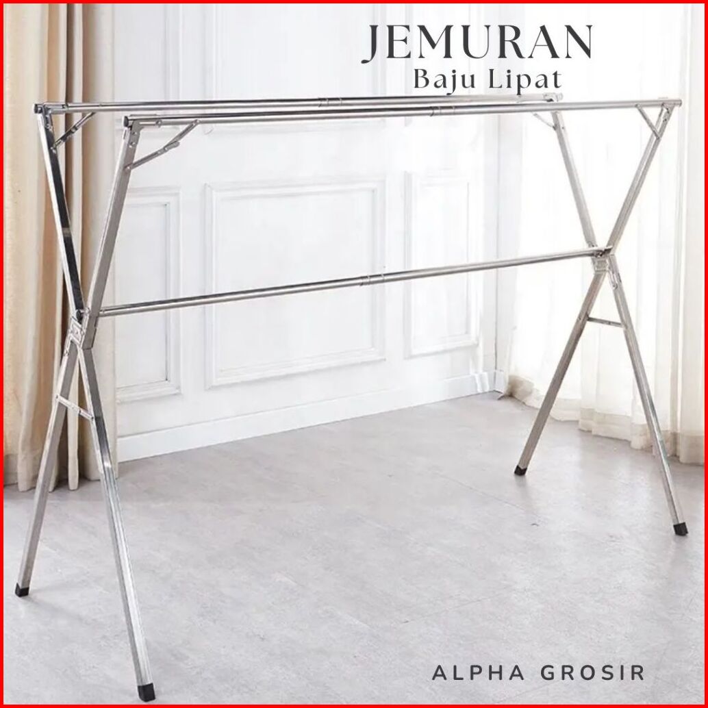 Alpha Jemuran Baju Lipat Stainless Steel Jemuran Pakaian Anti Karat Kuat Tempat Jemuran Baju Portable Stainless Gantunga
