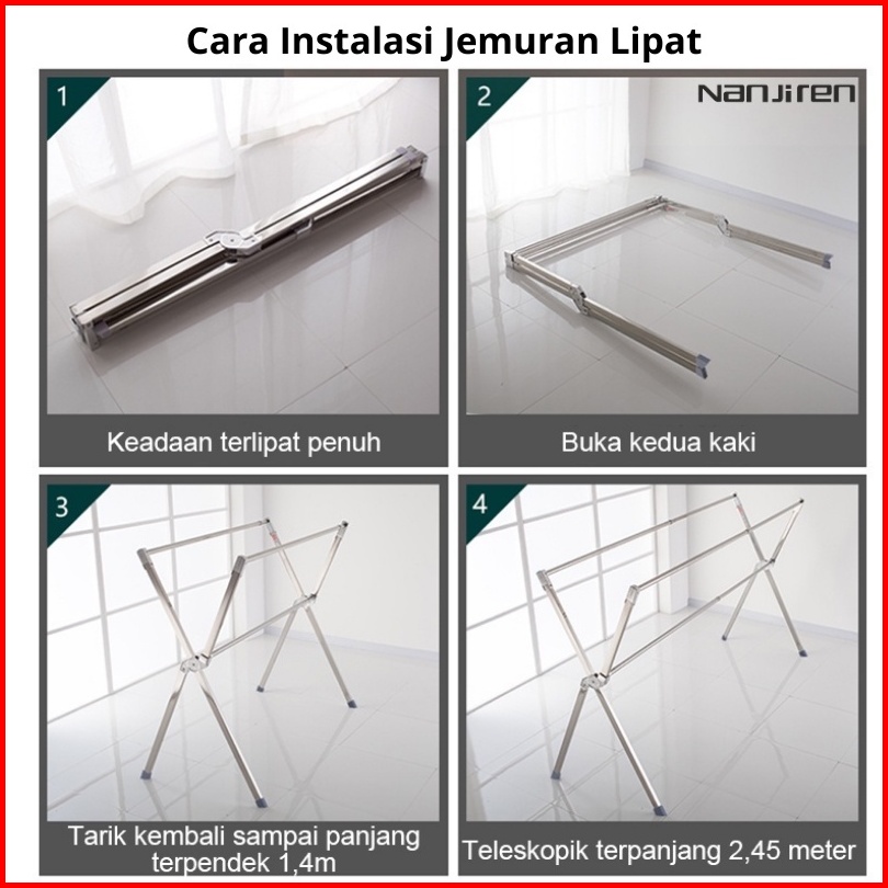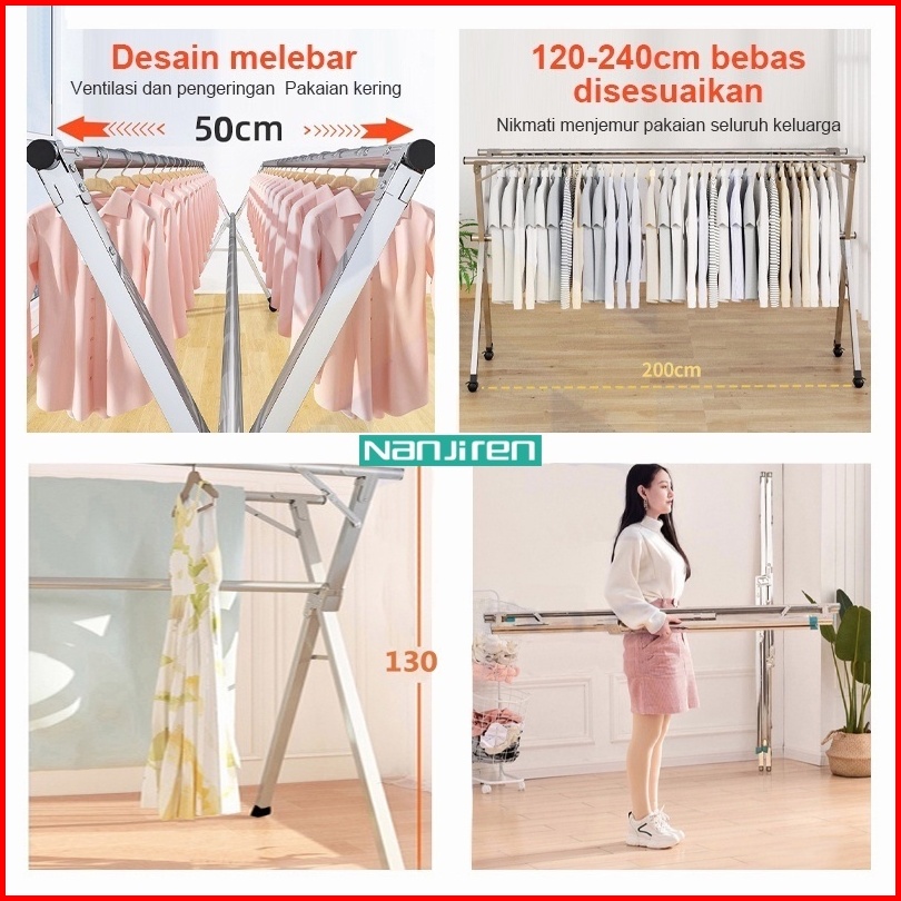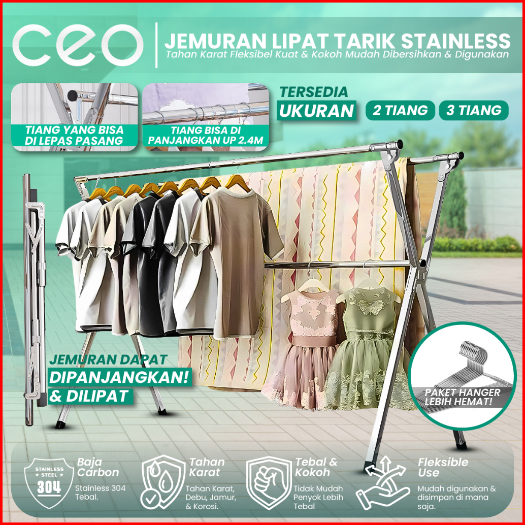Ceo Jemuran Tempat Gantungan Pakaian Baju Stainless Steel 304 Lipat Portable Kuat Kokoh Tahan Karat