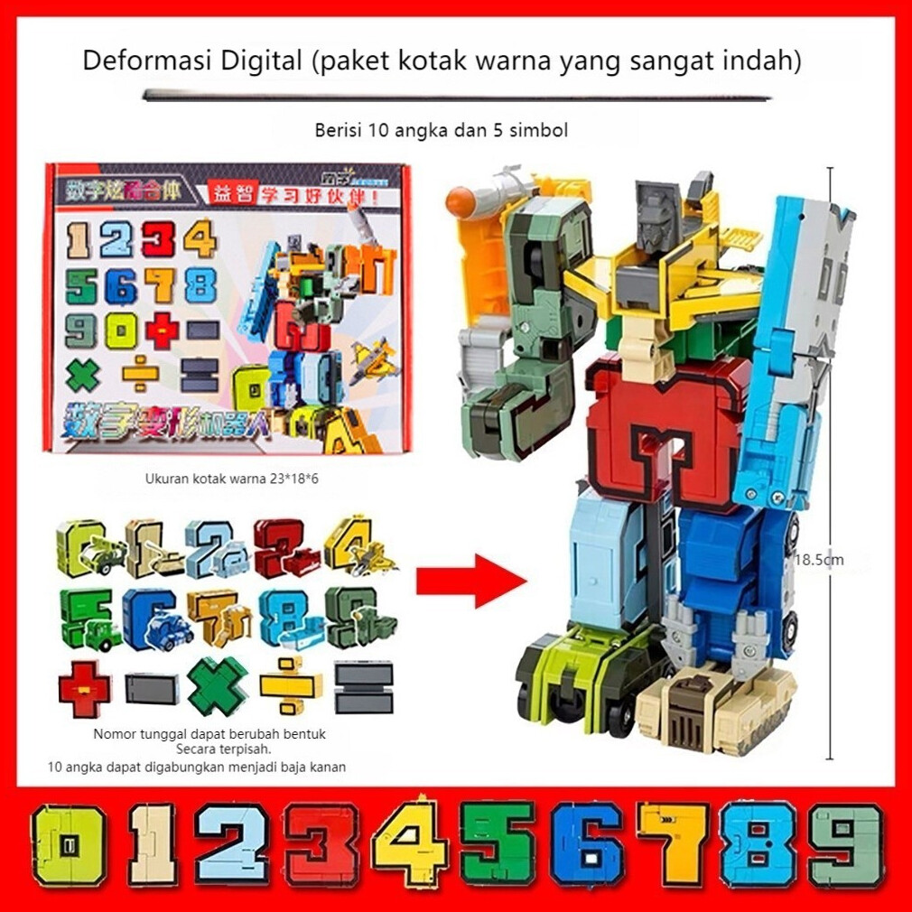 Hadiah Ulang Tahun Mainan Anak Robot Transformer Robot Angka Number 15in1 Number Robot Transformer Robot Angka Mainan Ed