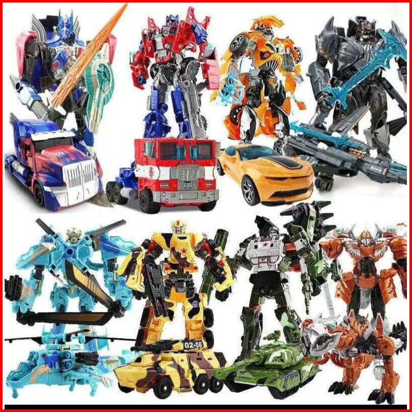 Optimus prime, Bumblee bee yellow, Bumblee bee red, Grimlock orange, Grimlock silver, Yellow jeep, Blue helicopter, Green Tank, Silver Tank, Police White, Red Helicopter, Jet Voyager, Optimus last knight, Megatron aircraft, Optimus prime deform, Bumble bee deform, Optimus dark, Bumblebee mechanical, Grimlock red, Dino slug, Optimusprime diamond, Optimus, Black police, Black optimus, Red bumble bee, Optimus LK 45cm