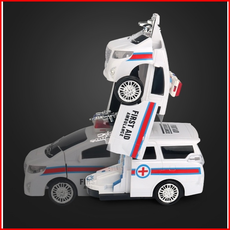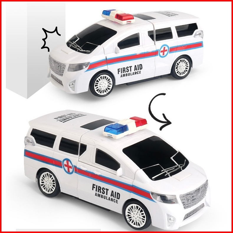 Happytoys.888 C66 First Aid Pioneer Mainan Mobil Ambulans Jadi Robot Ambulance Vanguard