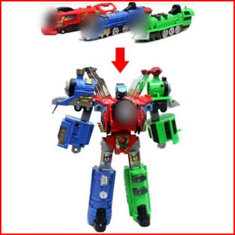 Mainan Best Seller Robot Kereta Berubah Robot Mainan Set Hadiah Robo Train Kereta 3 Gerbong Jadi Robot