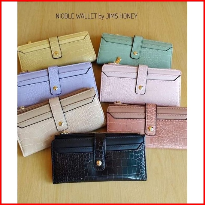 Nicole Wallet Jimshoney Dompet Kartu Panjang Wanita Bahan Croco Muat Hp