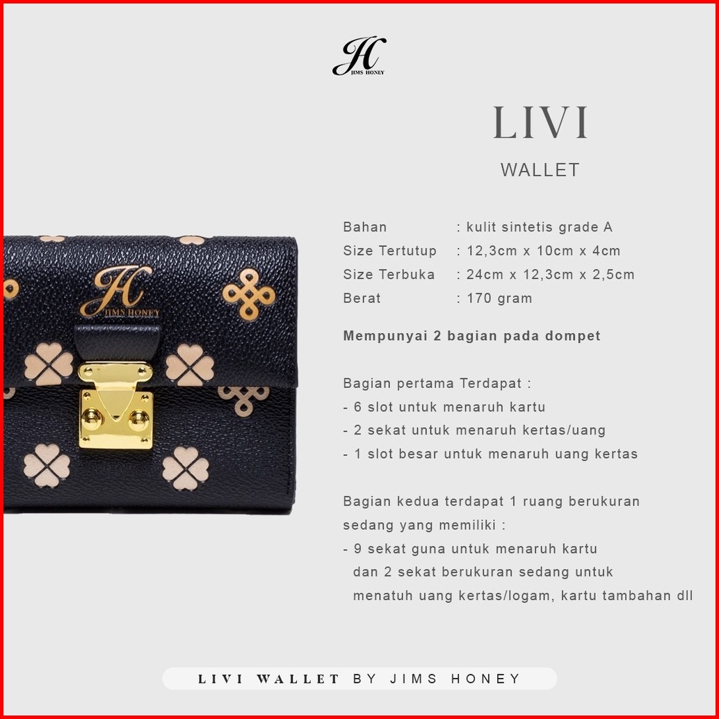 Livi Wallet Ori Jims Honey Dompet Lipat Wanita Multifungsi Aksen Floral
