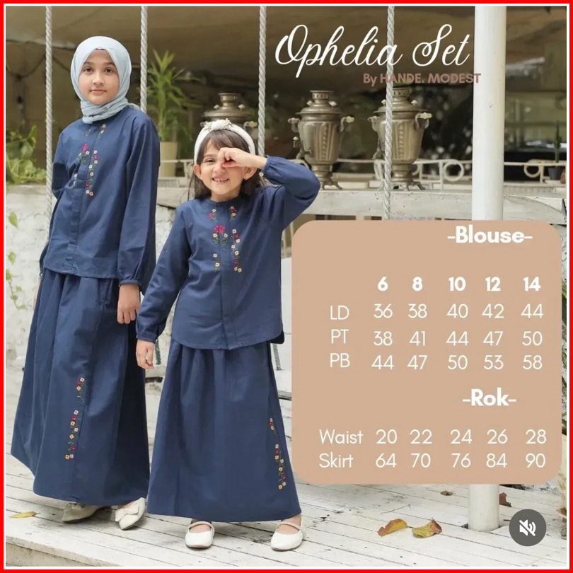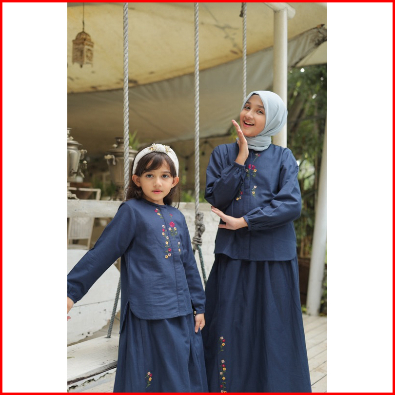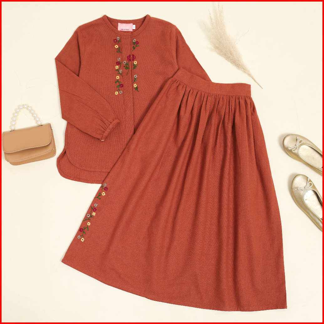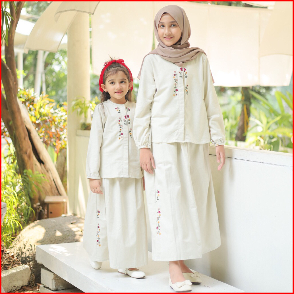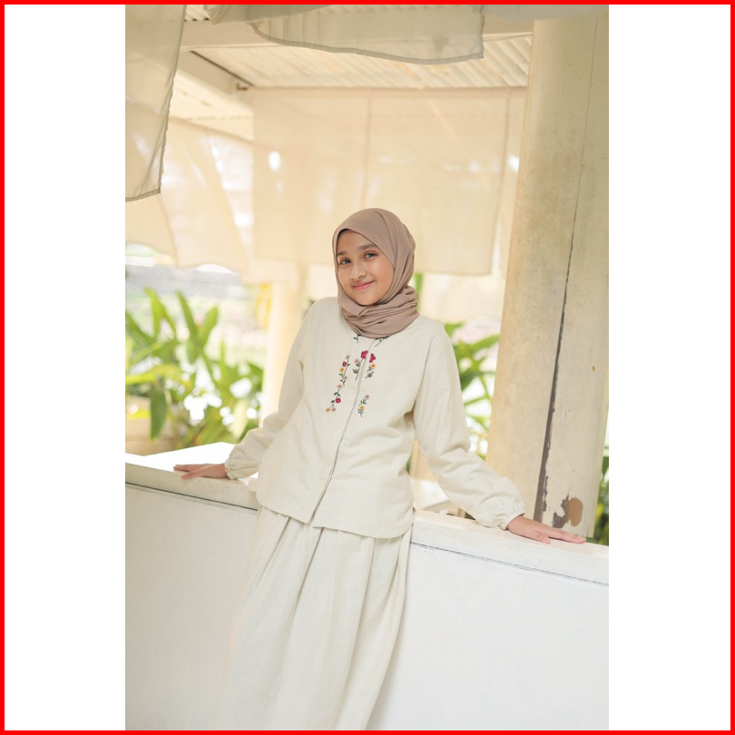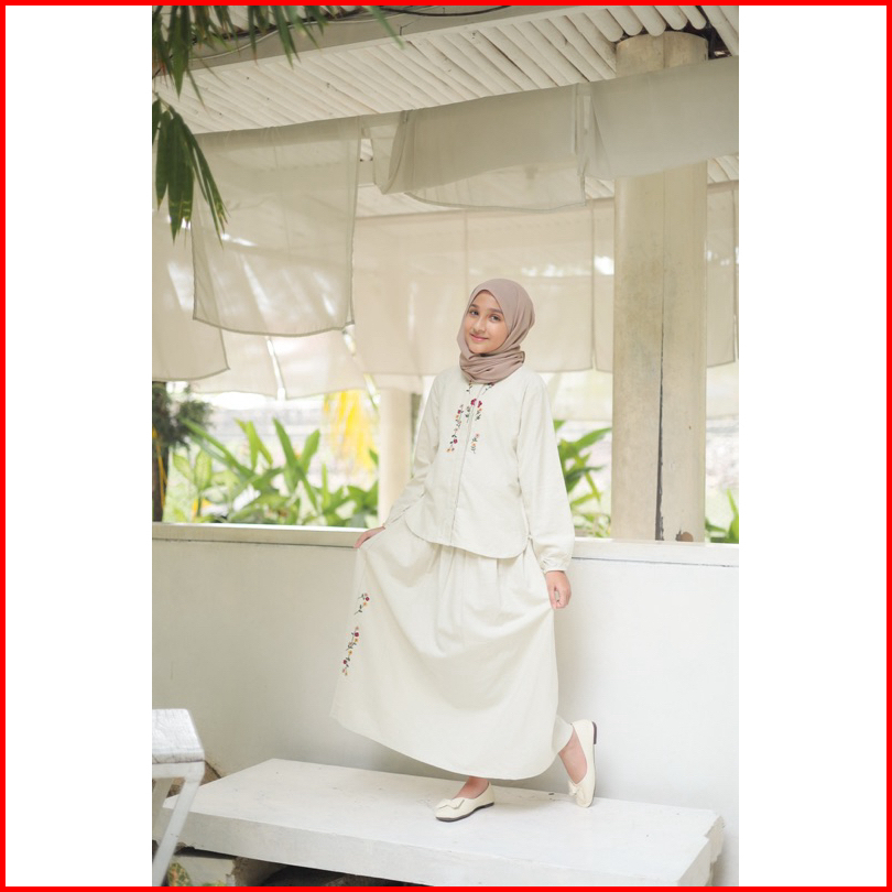Hande Ophelia Set Kemeja Rok Anak Remaja Tanggung Bordir Manual Bahan Linen