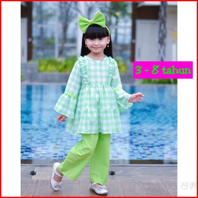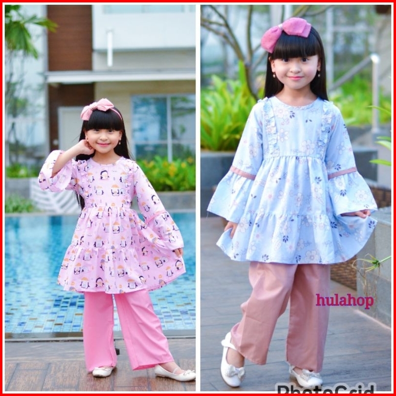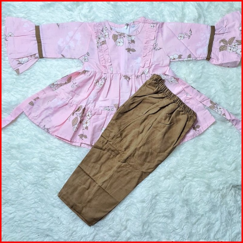 Baju Muslim Anak Perempuan Setcel Murah Lucu Bagus Bahan Katun Motif Bunga Polkadot Karakter Umur 3 4 5 6 7 8 Tahun