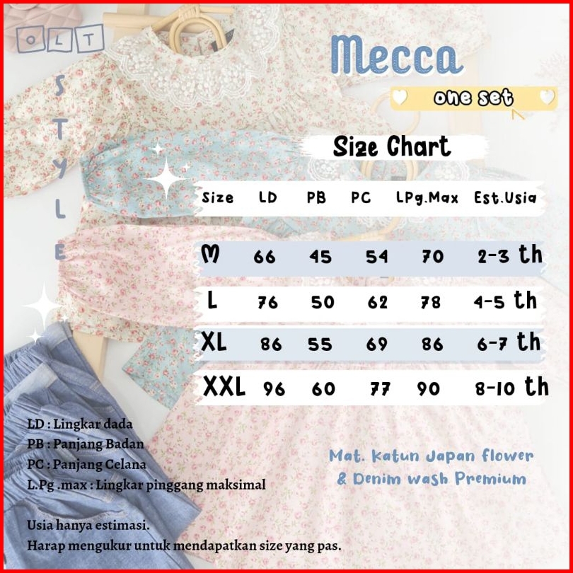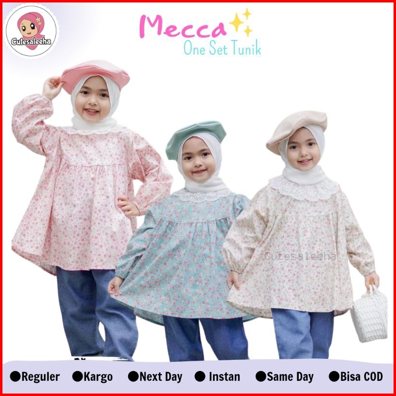 Cutesaleeha One Set Anak Perempuan Mecca Katun Jepang Original Setelan Anak Perempuan Setelan Tunik Anak Perempuan