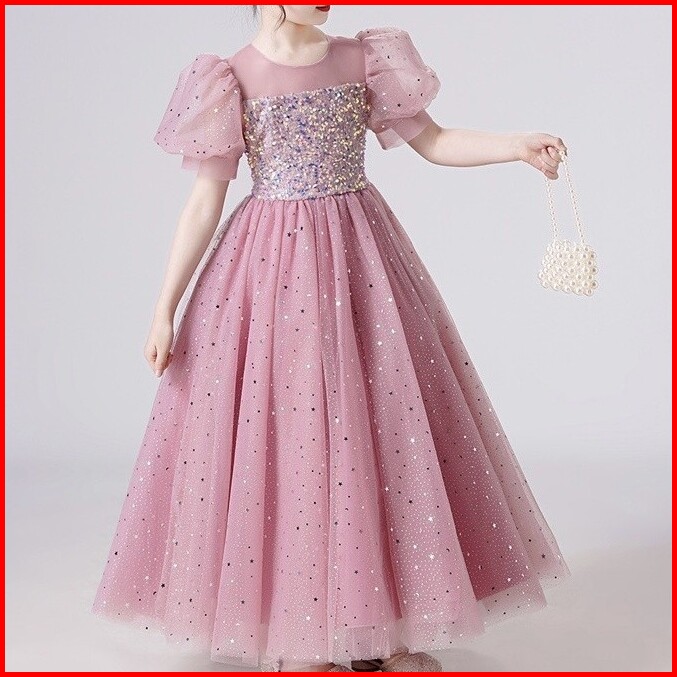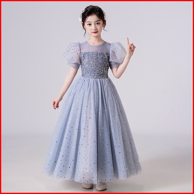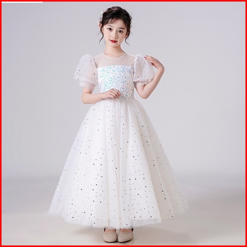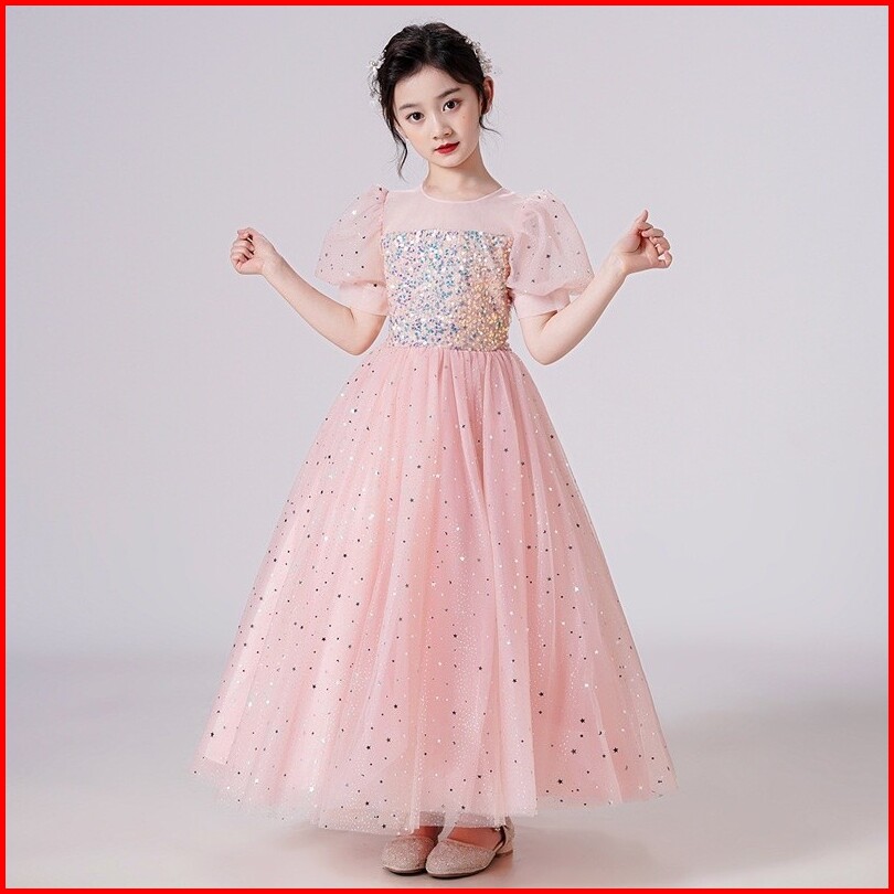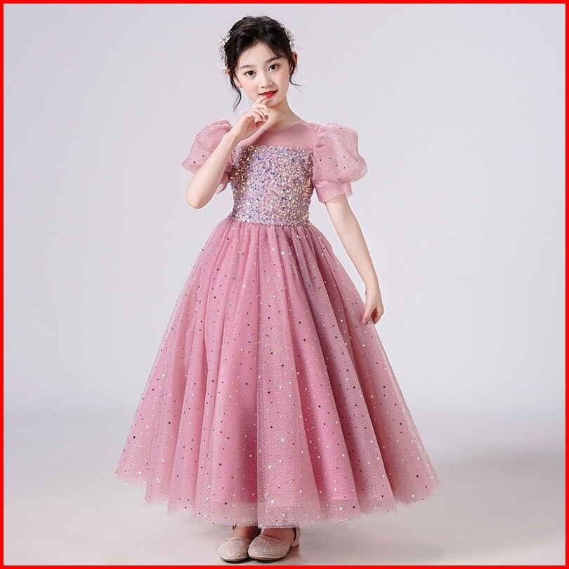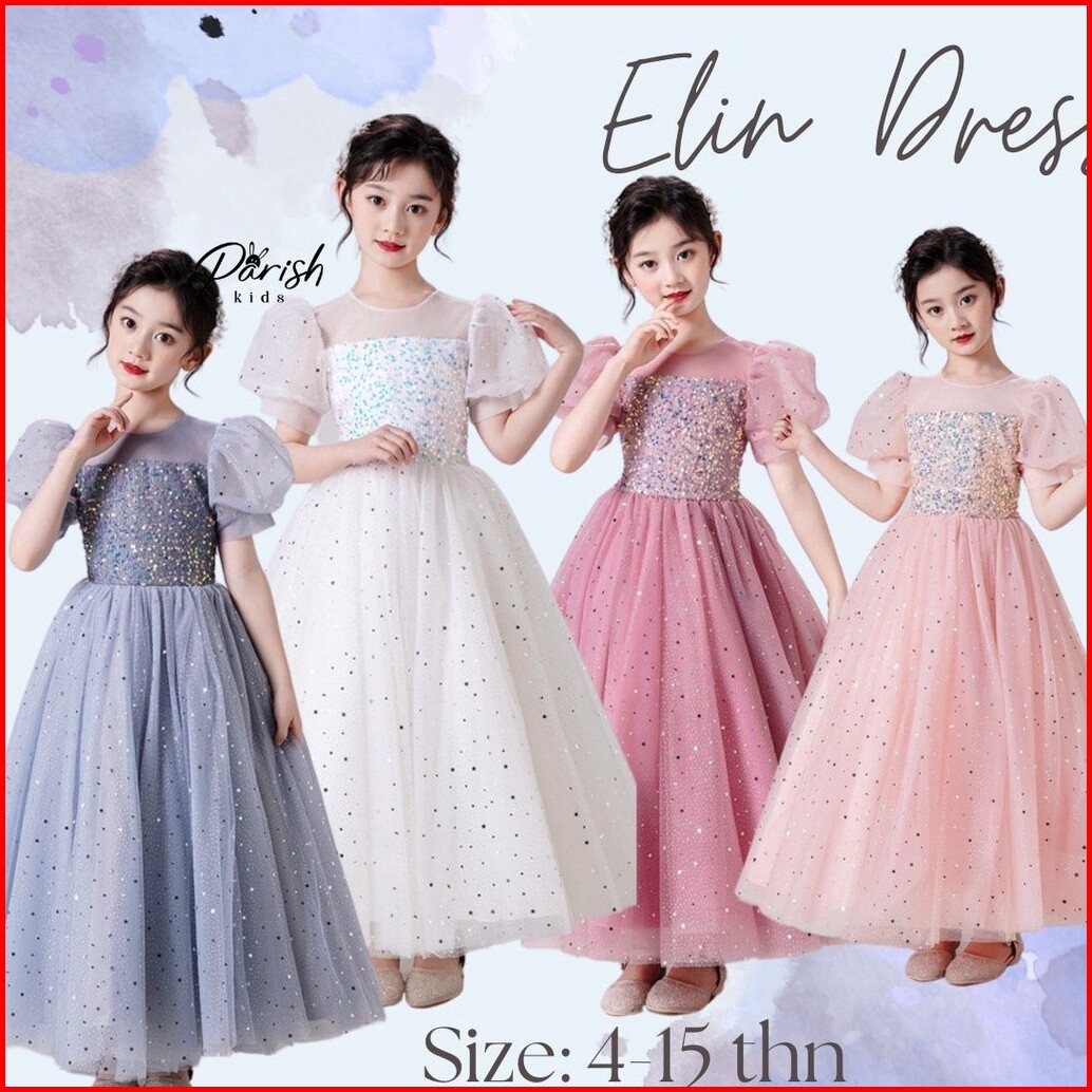 Elin White Pink Grey Party Dress Dress Pesta Anak Panjang