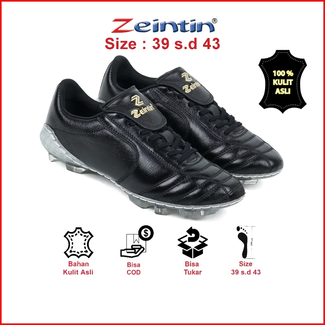 Zeintin - Sepatu Bola Zeintin Hitam Kombinasi Material Kulit Asli Terbaru As Oj