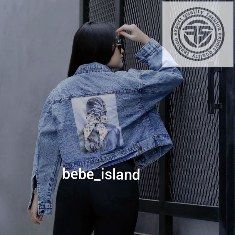 JAKET JEANS CROP RAWIS PITA BELAKANG LD 120CM JUMBO OVERSIZE WANITA