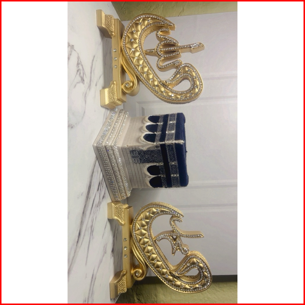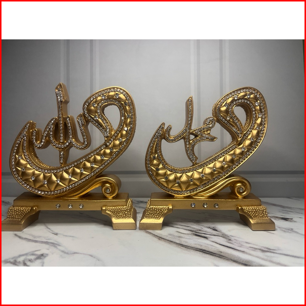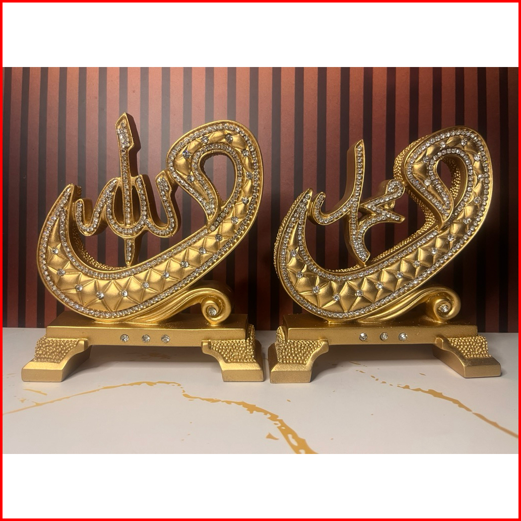 Satu Set Pajangan Meja Lafadz Allah Muhammad Bentuk Ornamen Perahu Mewah Berkualitas Resin Haji Umroh Mewah Elegant Aest