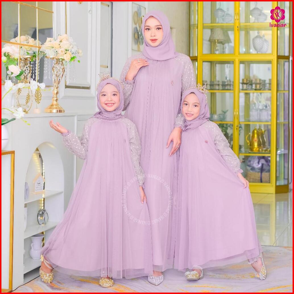 Ivaniar Asha Dress Dress Couple Mewah Ibu Dan Anak Perempuan Usia 1-12 Tahun